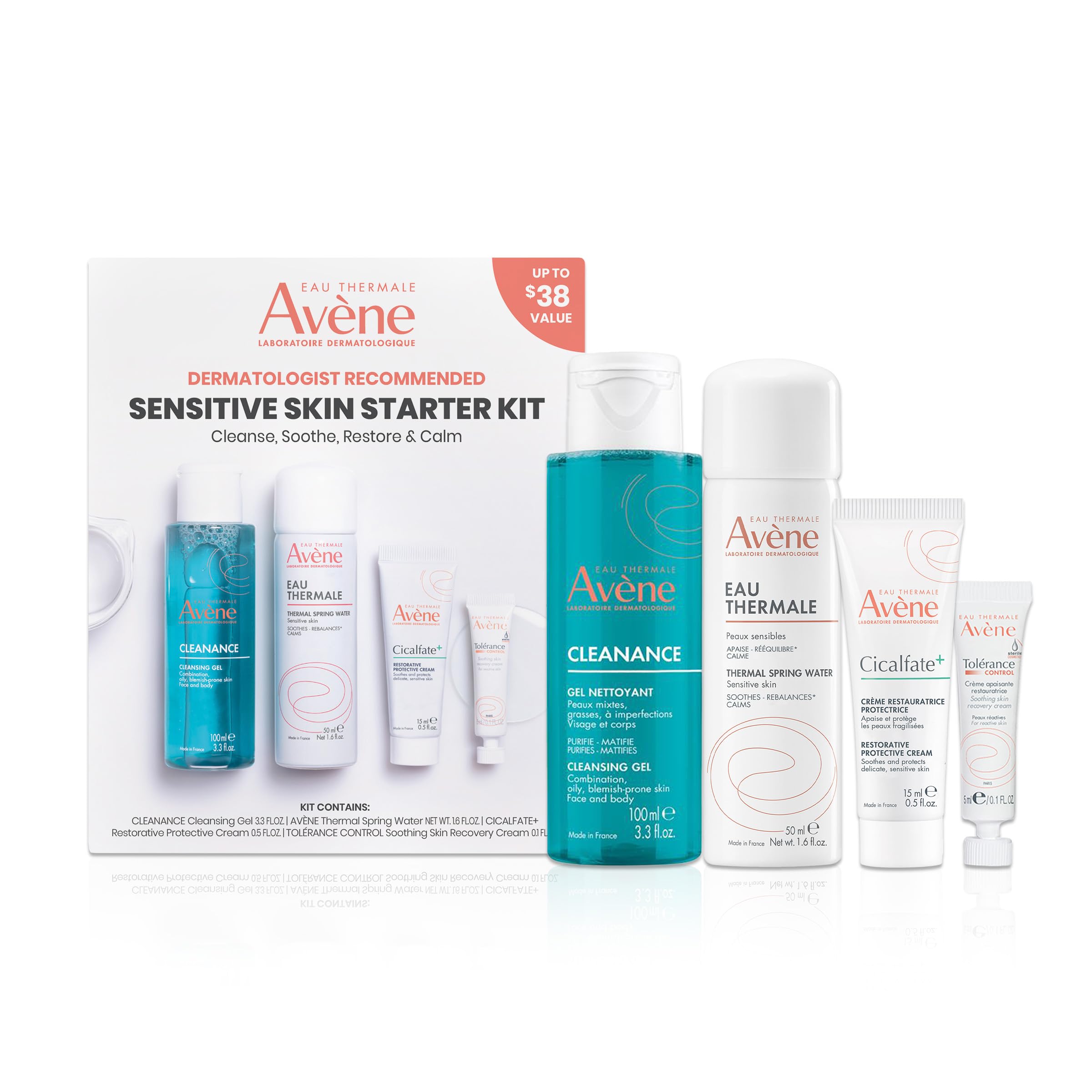 Avène's Dermatologist Recommended Sensitive Skin Starter Kit is clinically proven to cleanse, soothe, restore and calm skin.
