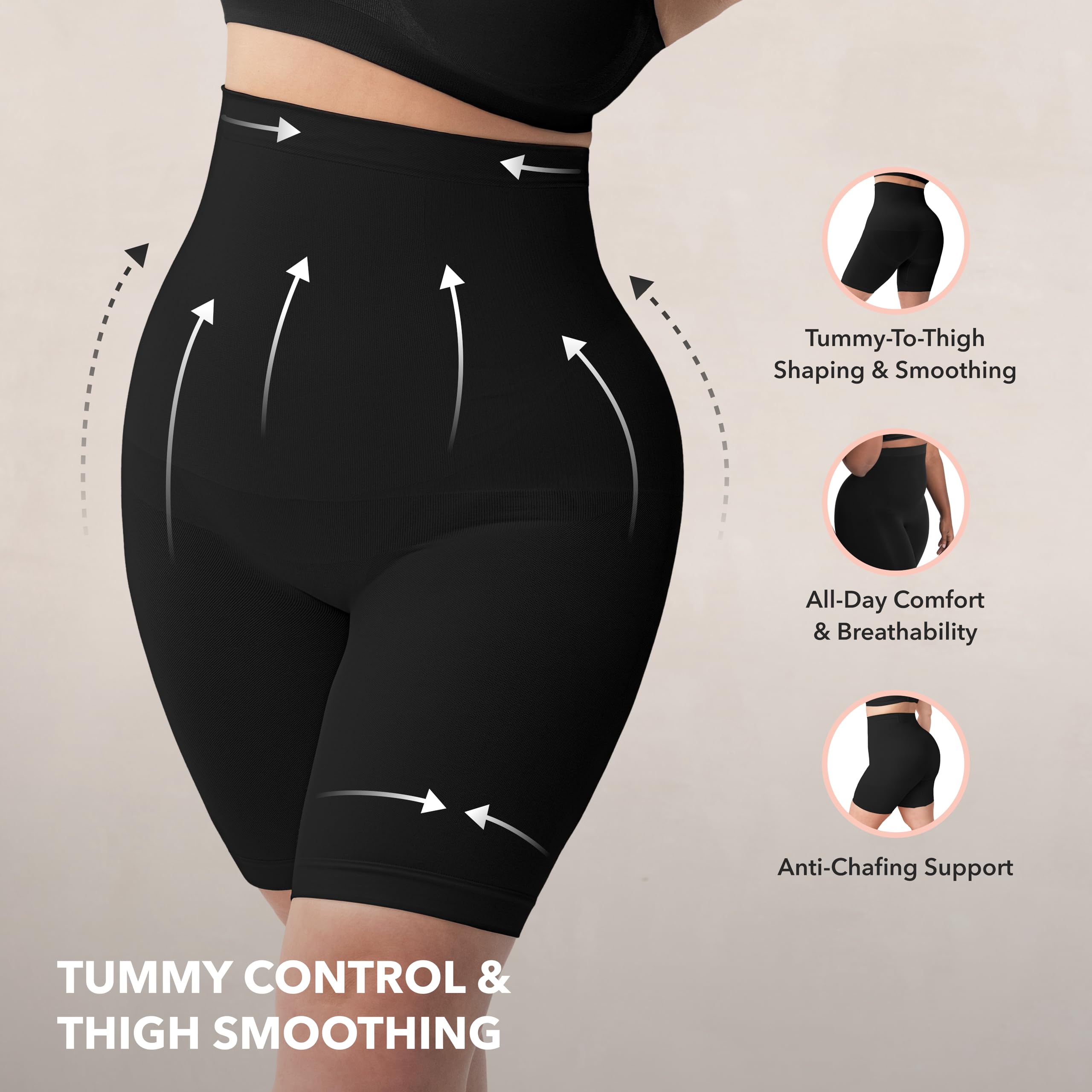 INVISIBLE SUPPORT UNDER ANY OUTFIT: Crafted with a seamless shapewear tummy control design, these shorts smooth your midsection and thighs without lines or digging. Perfect for layering, they stay invisible under tight clothes and hold up beautifully, even after machine washing.