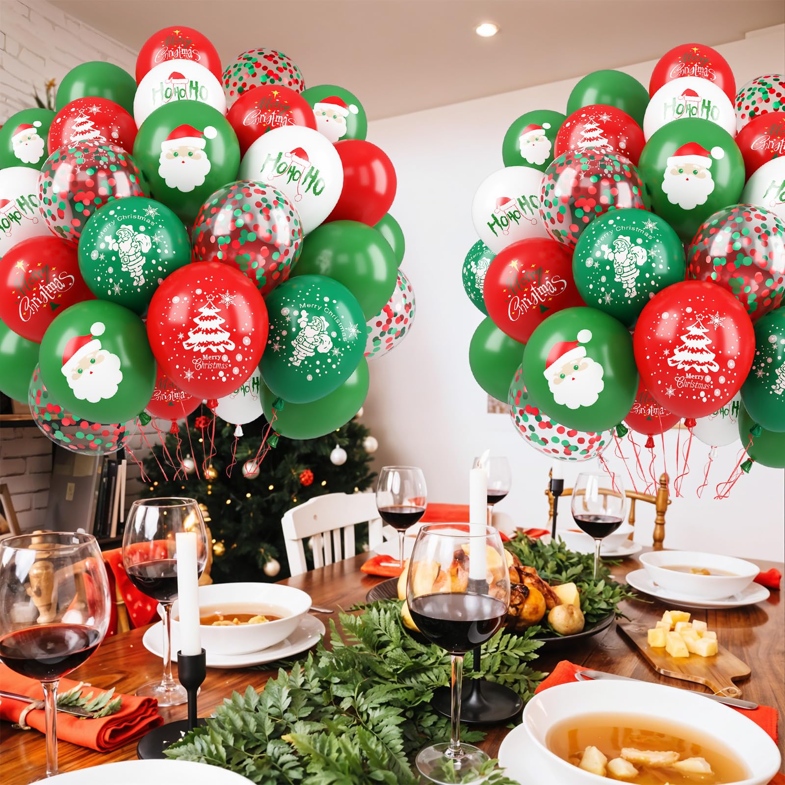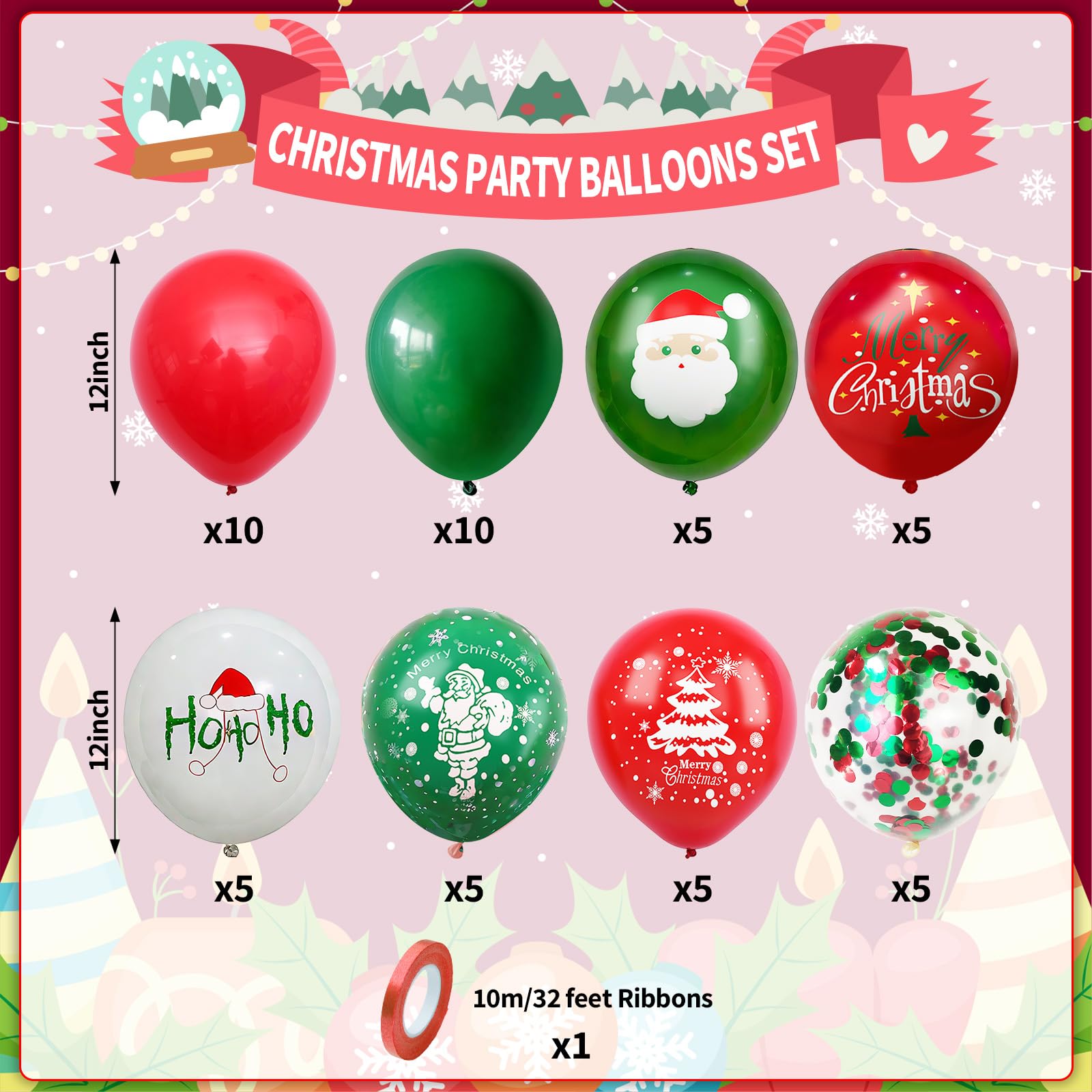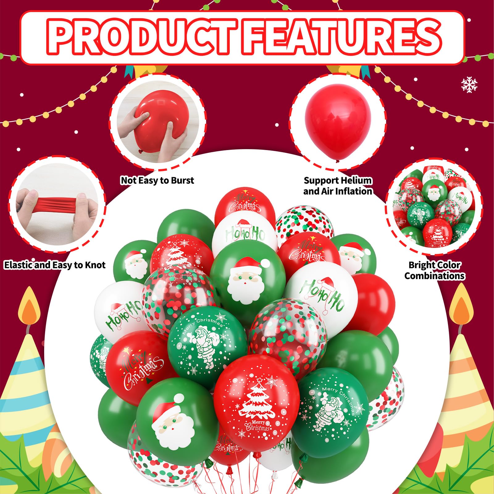WHAT YOU GET – This Christmas balloon set includes 50 festive pieces. You’ll receive 25 x christmas printed balloons with Santa, Christmas trees, “HOHOHO”. The set also includes 10 x dark green balloons, 10 x red balloons, and 5 red-green confetti balloons—all in 12-inch size—plus 1 red ribbon. Featuring classic Christmas designs and vibrant holiday colors, this set instantly adds festive cheer and warmth to your Christmas parties, family gatherings, and seasonal celebrations.