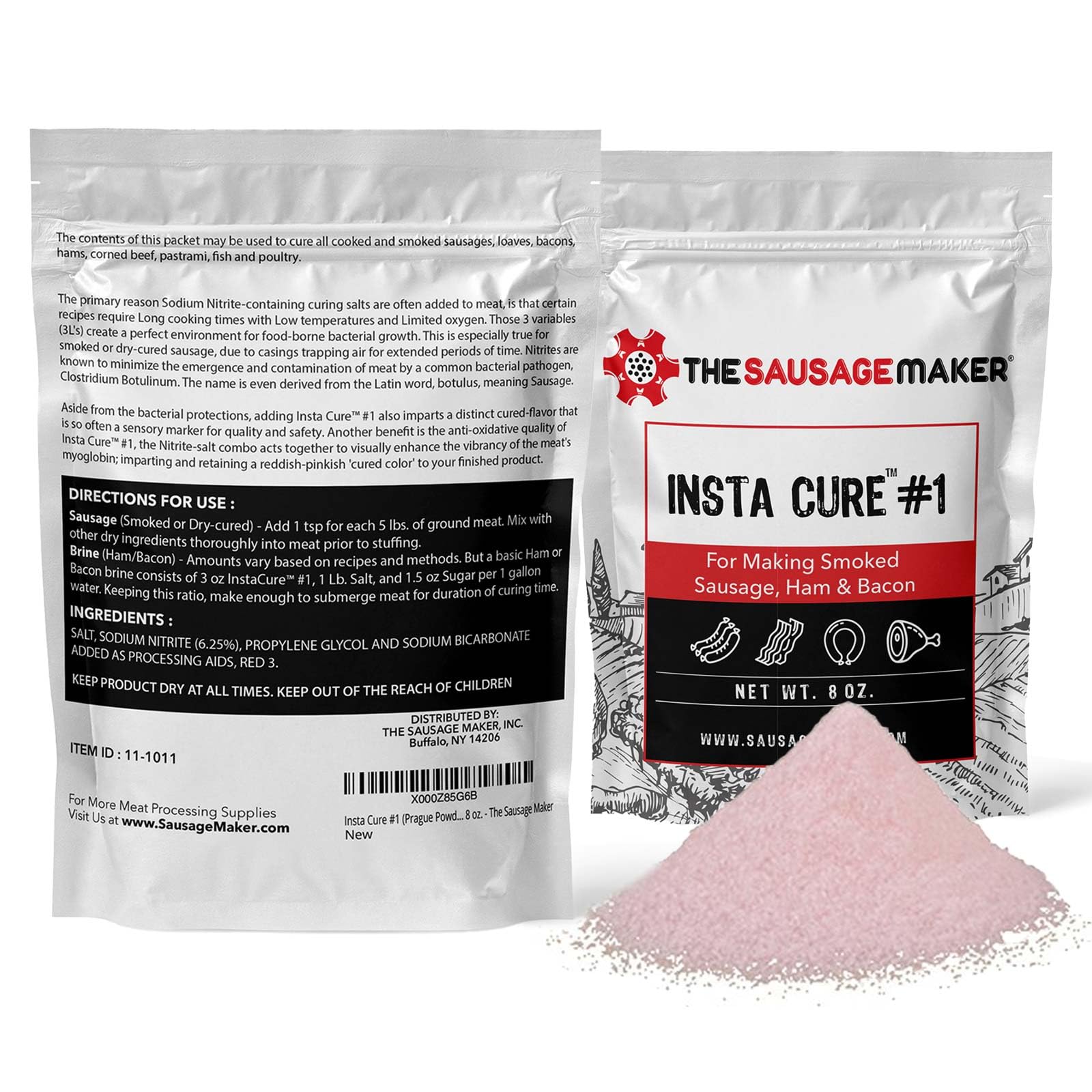 TRUSTED CURING FORMULA MADE IN THE USA: The Sausage Maker Inc.'s Insta Cure #1 contains 93.75% table salt and 6.25% sodium nitrite, meeting strict industry standards. The formula is dyed pink to distinguish it from regular salt and ensure safe usage. Always follow recommended guidelines and keep children out of reach.