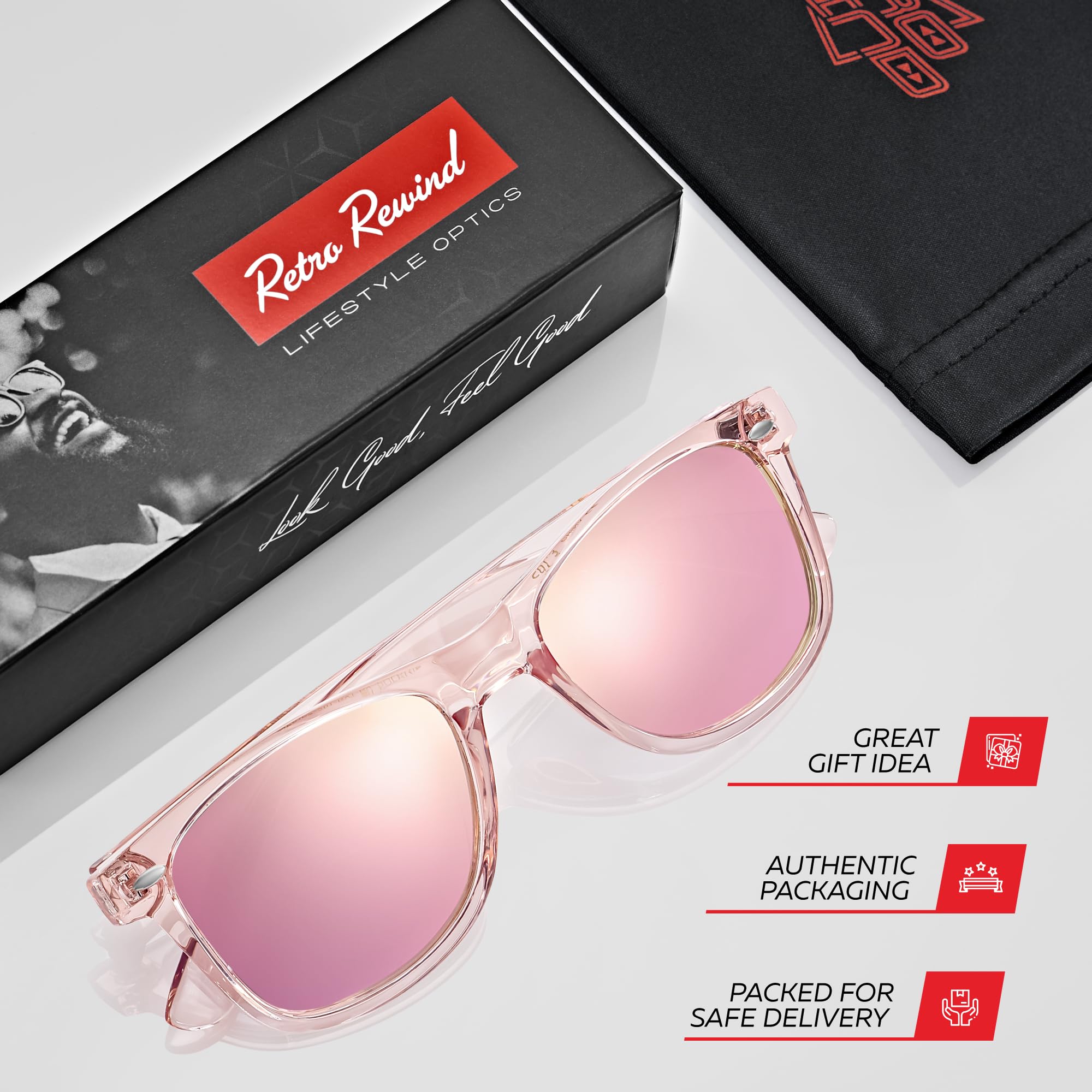 🕶️ PREMIUM FRAMES WILL MAKE A STATEMENT: Take your casual outfit to the next level with a pair of retro sunglasses for women and men by Retro Rewind. The lightweight sunglass frames are made of shatterproof Polycarbonate with a smooth rubberized finish. Rather than being painted, Retro Rewind utilizes a color injection technology, preventing color deterioration and giving your sunglasses an edge.