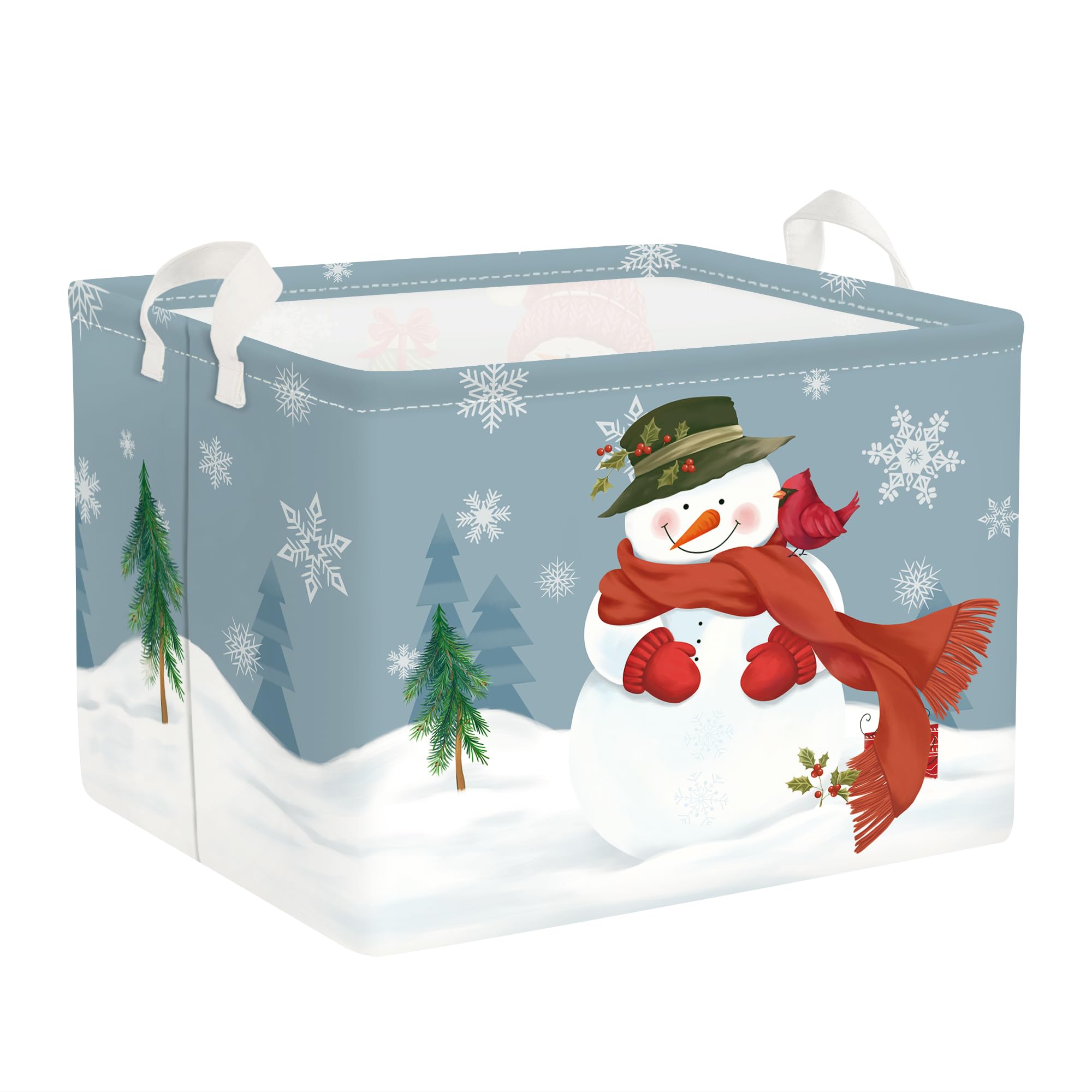 Penguin Snowflake Winter Basket: The handle ensures you can take it to anywhere, convenient and labor-saving for housework; Rectangular shape make you can put it on shelf easily