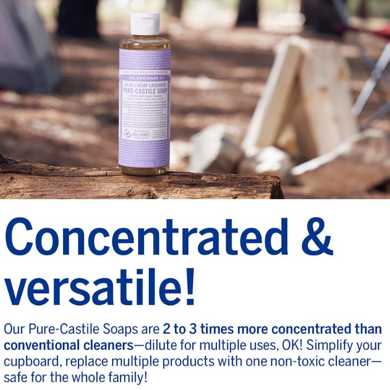 3X MORE CONCENTRATED THAN MOST LIQUID SOAPS: Dilute! Dilute! Use as dish soap, makeup brush cleaner, pet wash, or laundry soap. A little goes a long way—less waste, more value. This versatile Dr. Bronner’s soap is made for countless uses