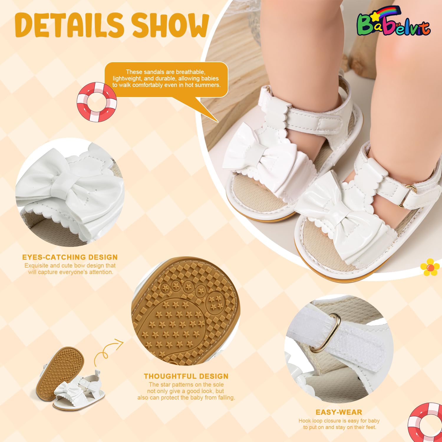 HOOK LOOP: Easy to put on, and easy off with hook loop closures on ankle strap, it can easily adjust the size and fit. Still stay on your baby’s feet