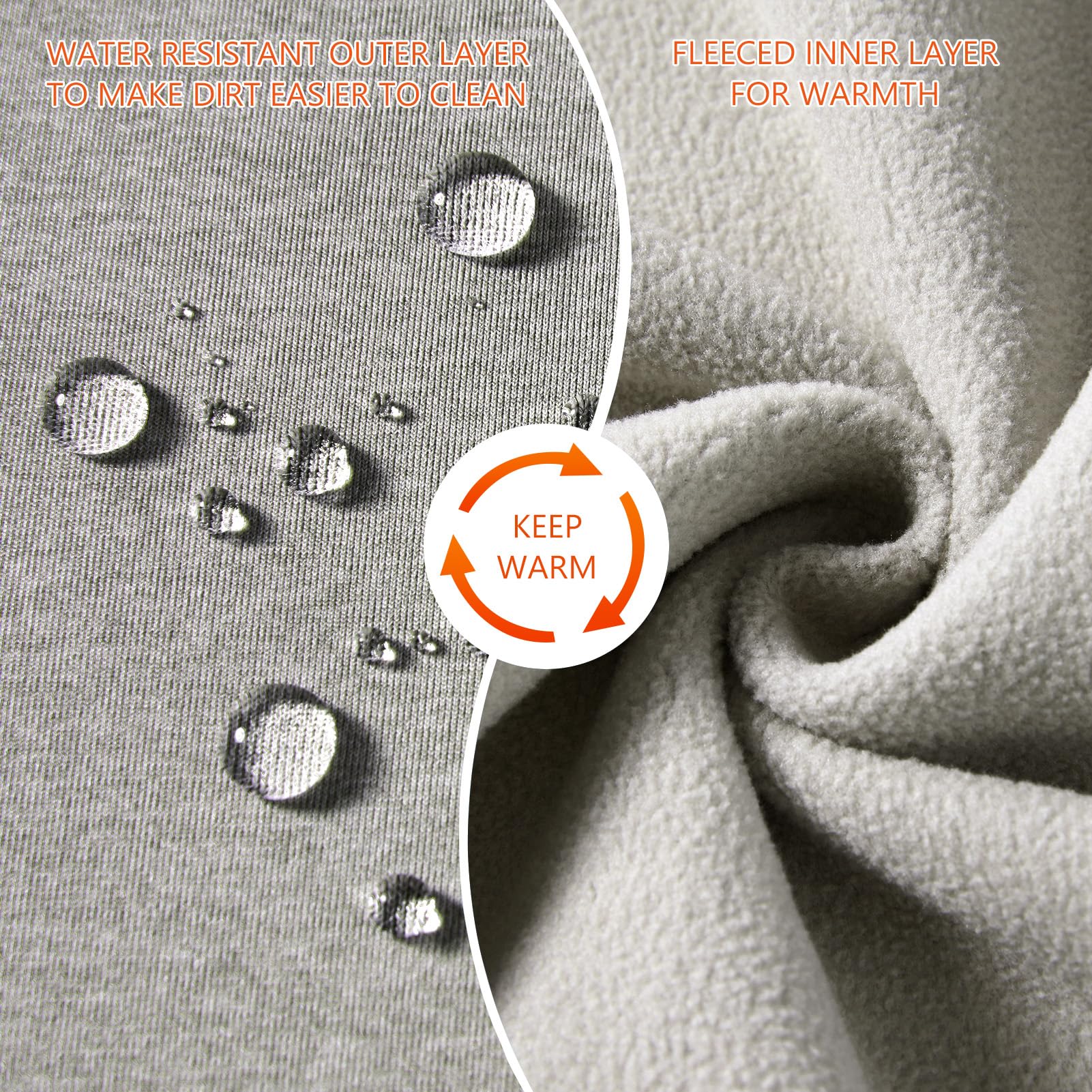 Water and stain-resistant treatment makes dirt easier to clean; Stretchy elastic fabric allows for free movement, and the soft fleeced lining provides extra warmth
