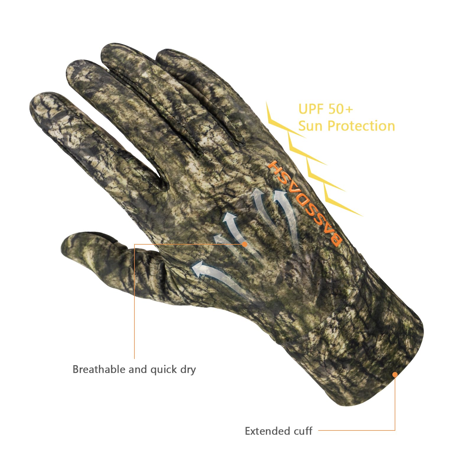 Description BASSDASH Men’s Camo Hunting Gloves UPF 50+ Lightweight Touchscreen Gloves for Warm Weather Fishing Hiking Outdoor Activities HG01M