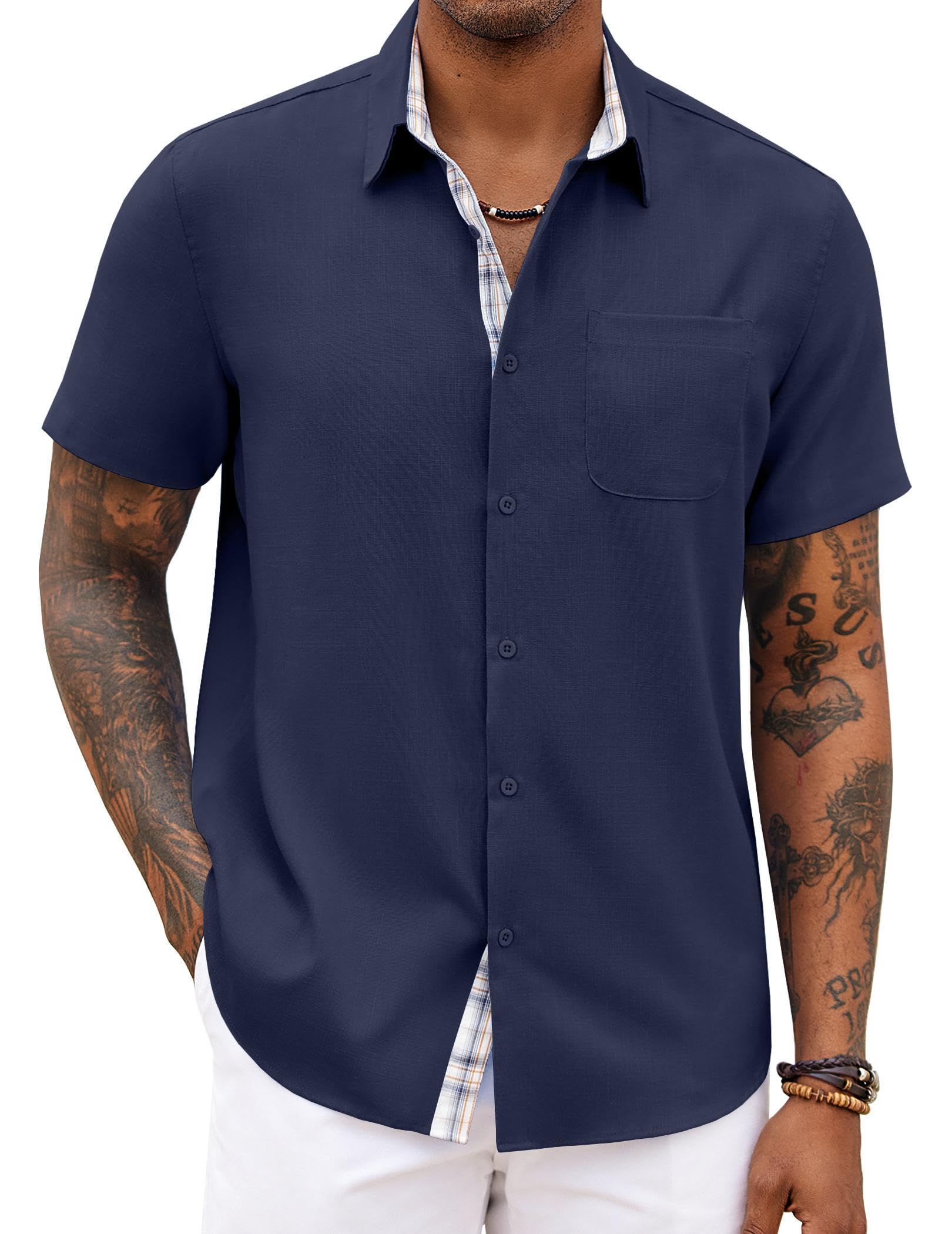 COOFANDY LINEN SHIRT --- Mens Casual Button Down shirt is made of high quality cotton linen fabric. Feature with Breathable, Lightweight, Skin-friendly, which can resistant shrink, provide you feeling cool and comfotable all day