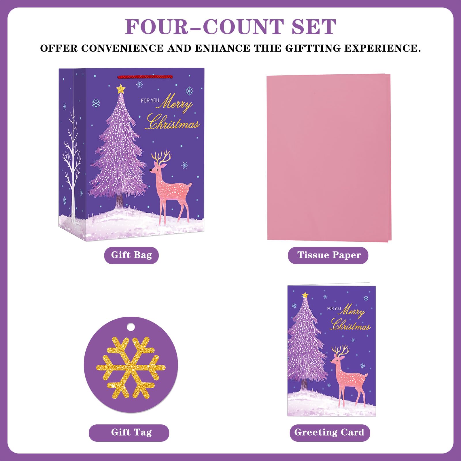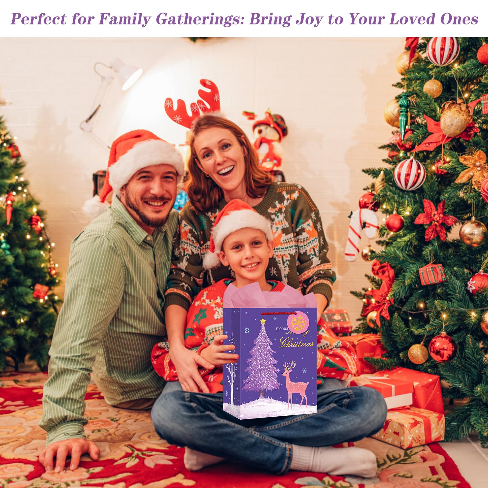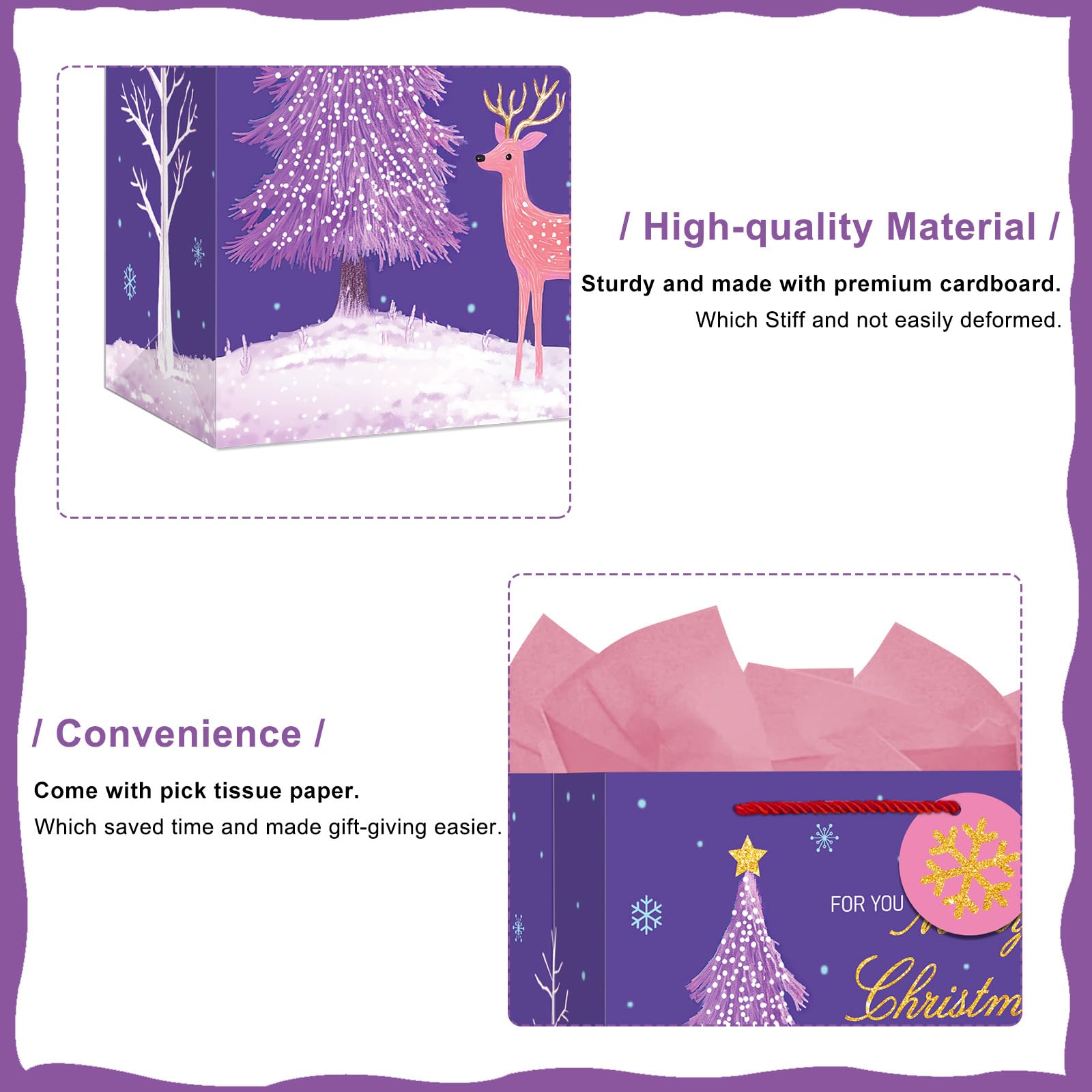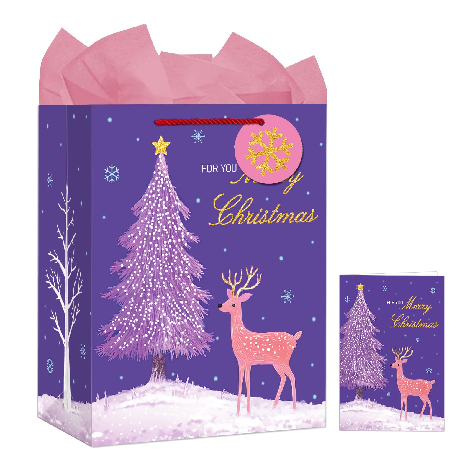 【All-In-One Gift Solution】: Each xmas gift bags comes with matching tissue paper, a gift tag, and a card, providing you with everything you need to present your gifts beautifully and conveniently.