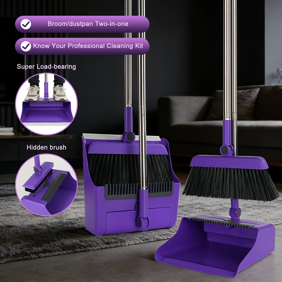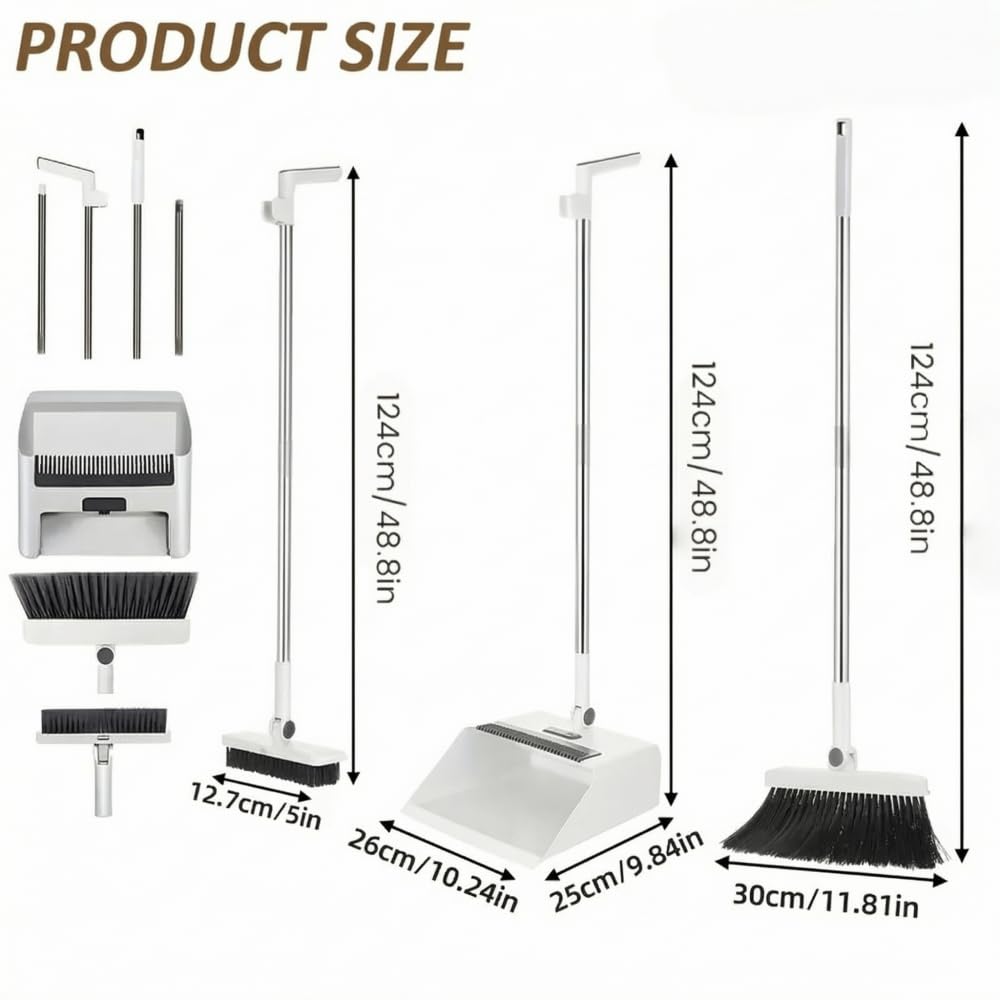 【3-in-1 Broom and Dustpan Set with Cleaning Teeth】This household broom and dustpan set features a long-handled broom that can be fitted with six extension poles of varying lengths, allowing you to sweep comfortably without bending over. It includes a built-in retractable floor brush, and you can swap out the dustpan brush head as needed.