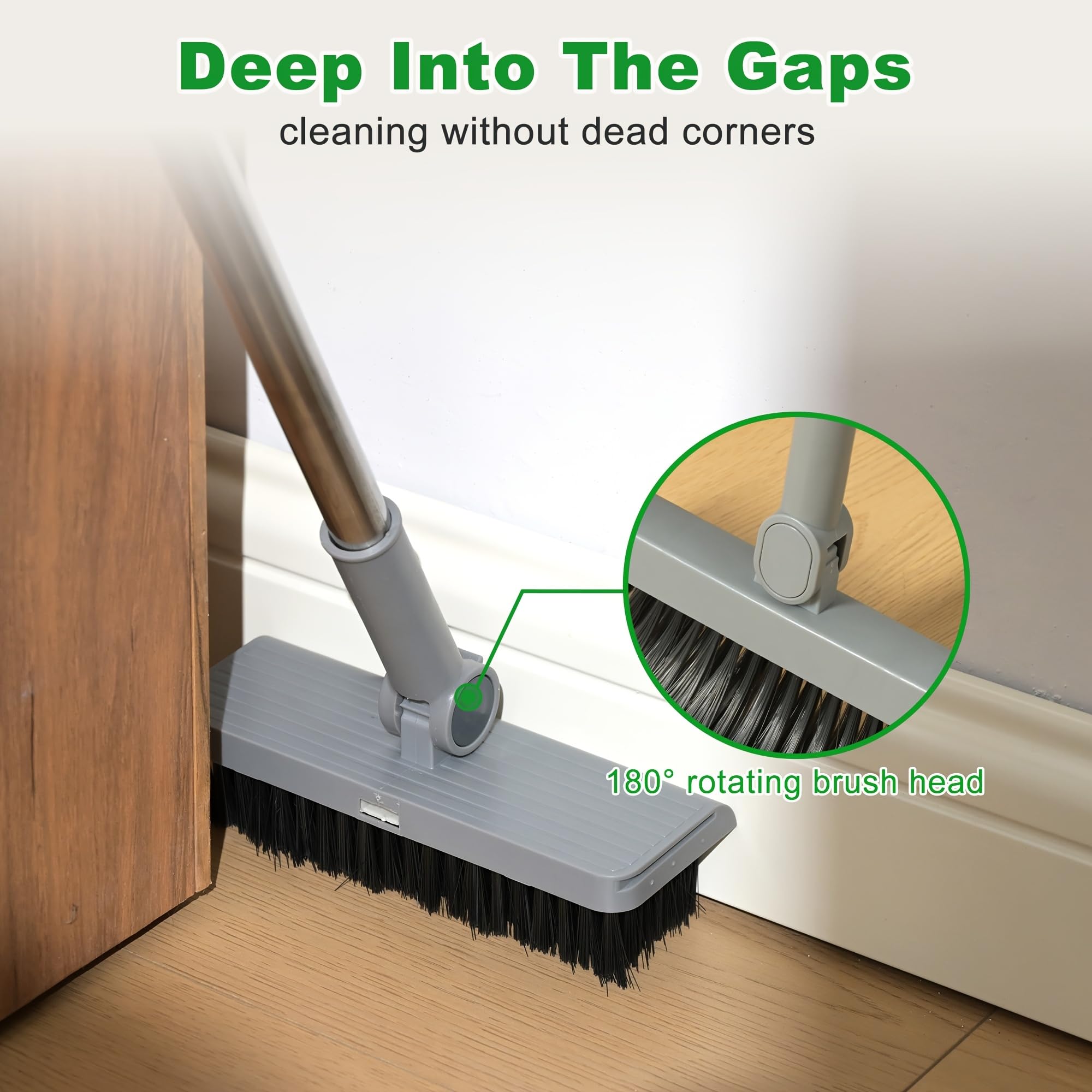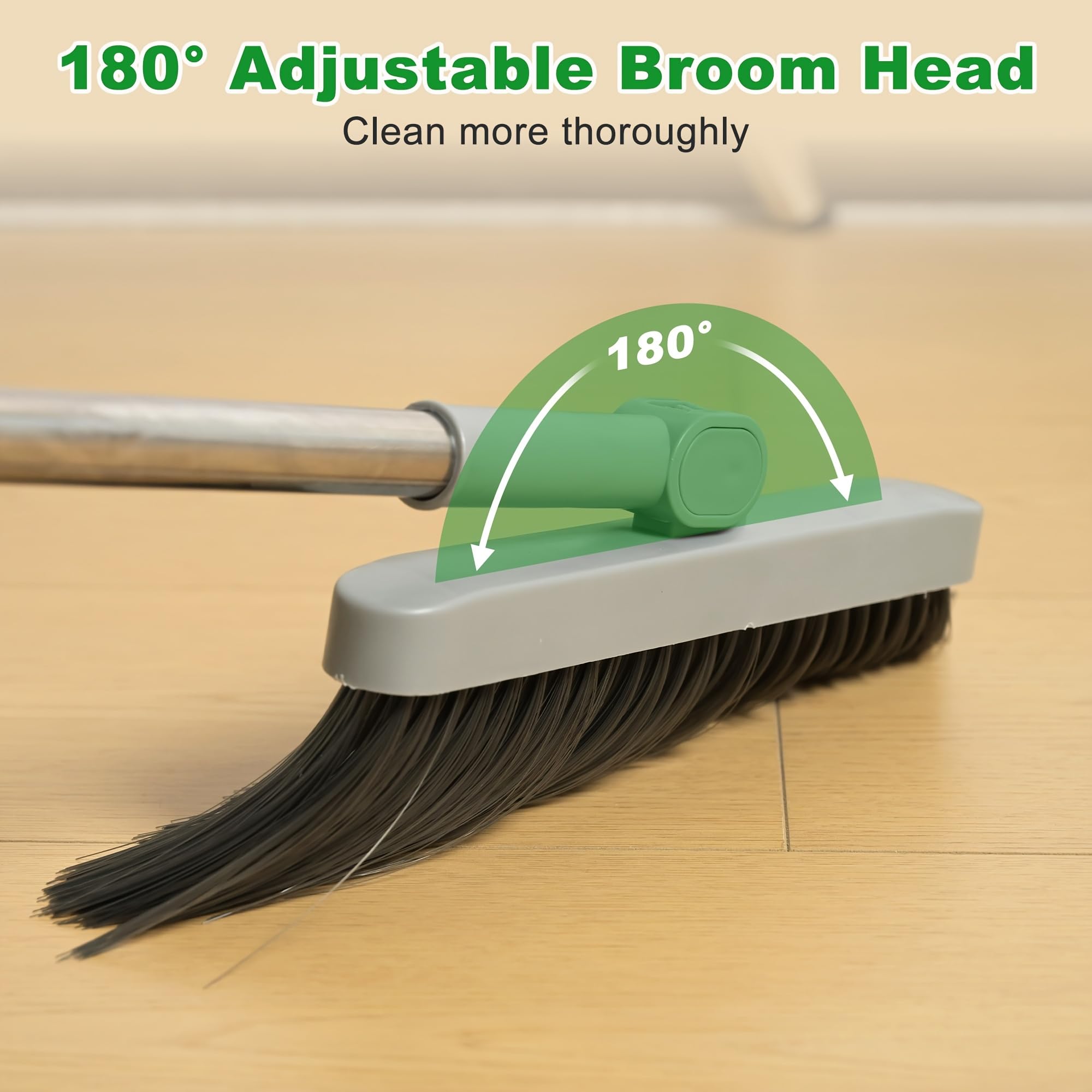 【Broom and Push Design】The wide broom head features three- and five-layer thickened bristles, ideal for cleaning large areas and corners. The broom head rotates 180° to reach deep under furniture and into corners, saving you the hassle. It offers a long service life, is eco-friendly, and is suitable for heavy-duty cleaning indoors and outdoors.