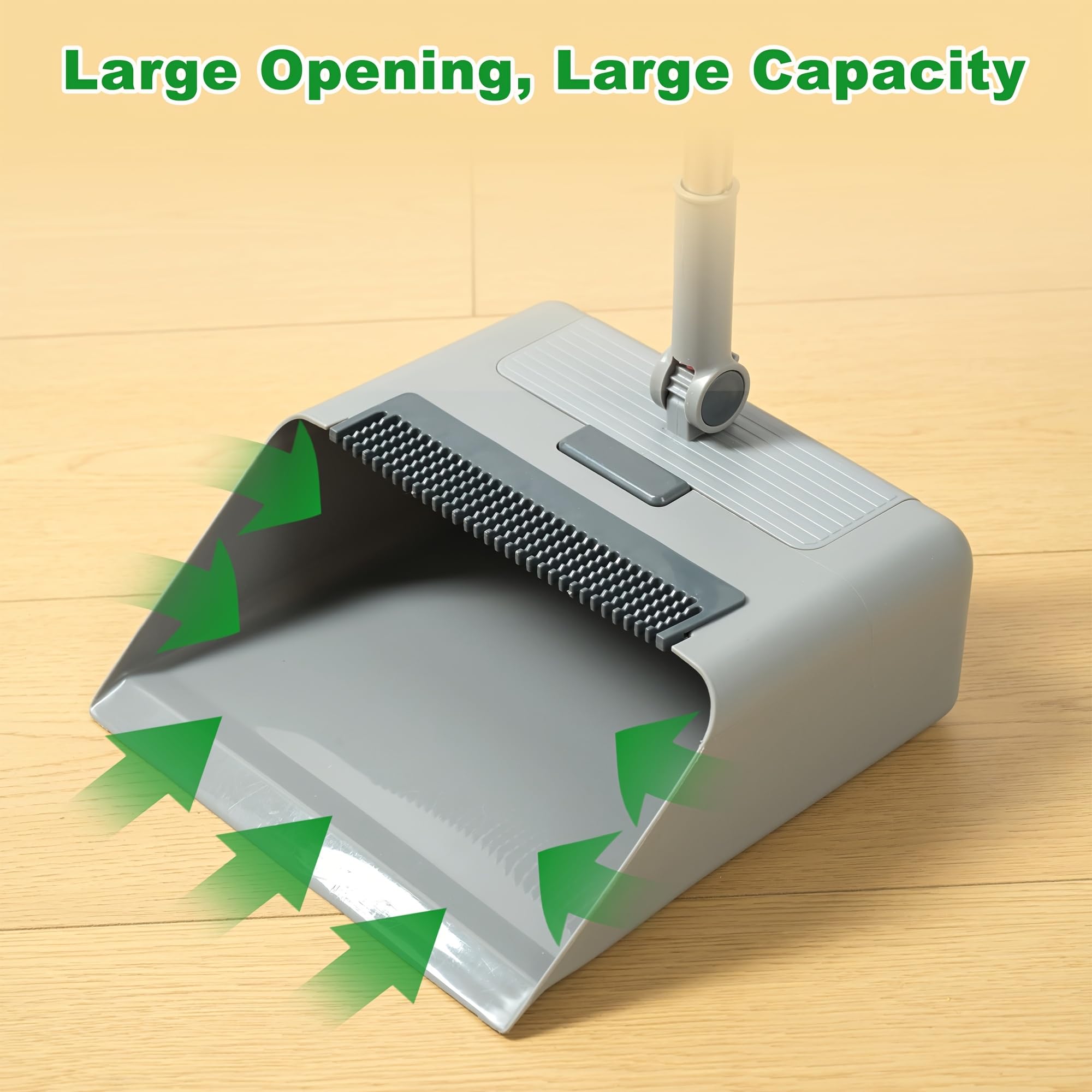 【Dustpan Comb Design】The built-in comb teeth in the dustpan easily sweep pet hair and human hair from the broom into the dustpan, eliminating the need for manual cleanup. The dustpan’s edges fit snugly against the floor, preventing dust from being kicked up during sweeping. This set is the ideal choice for households with pets.
