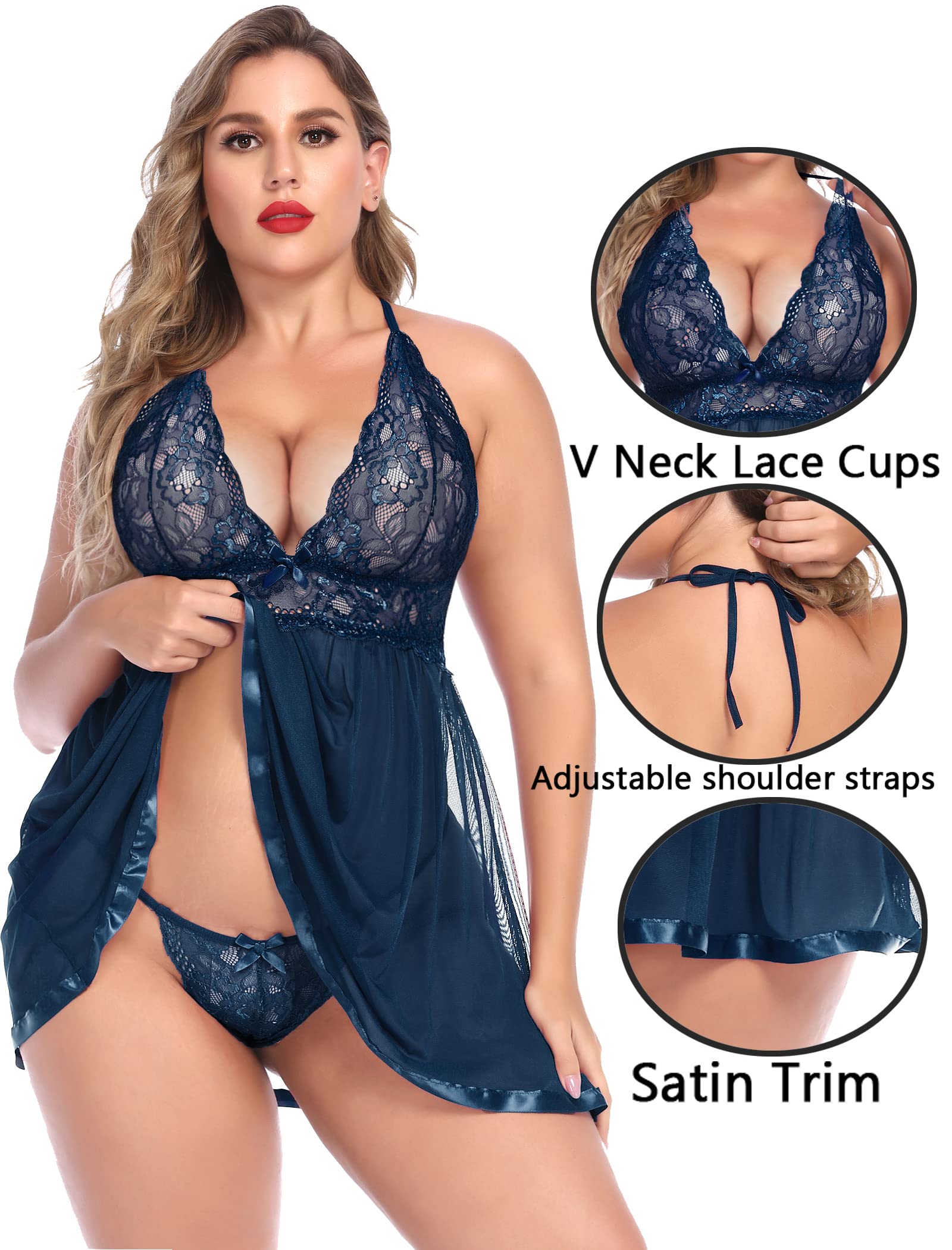 Style: plus size babydoll for women.plus size women lace lingerie set, v neck chemise, halter lingerie plus size, sexy lingerie for women plus size, lace mesh lingerie sleepwear nightie, see thru lingerie for women, plus size lingerie for women for sex.