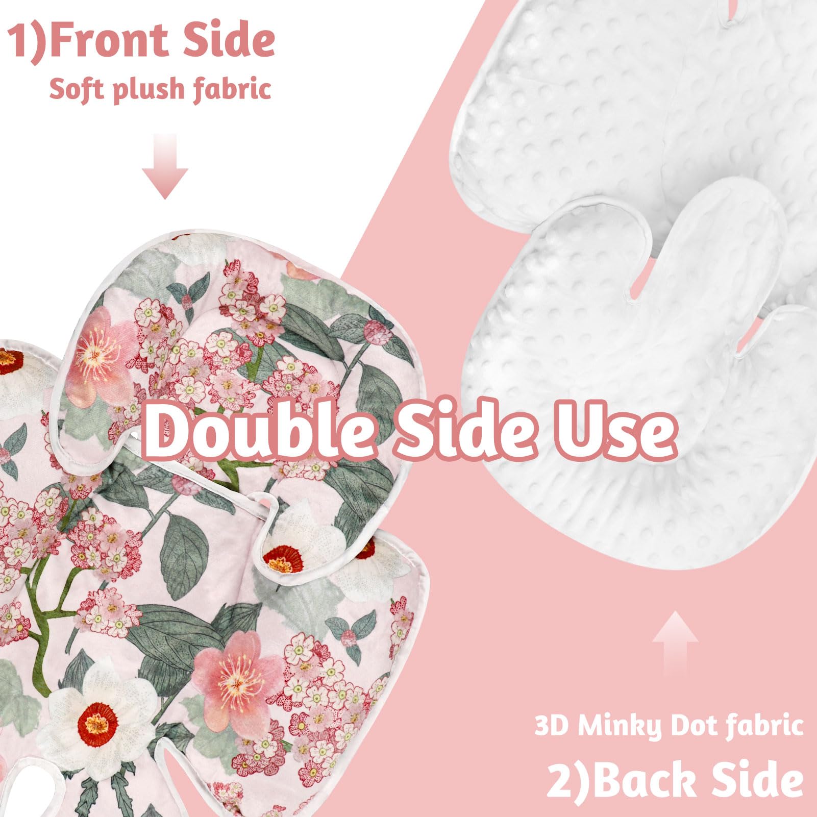 Double sided Design: This reversible baby car seat head support has a pretty pattern on one side, and raised dots on the other side which could bring your baby a unique 3 D touch feeling
