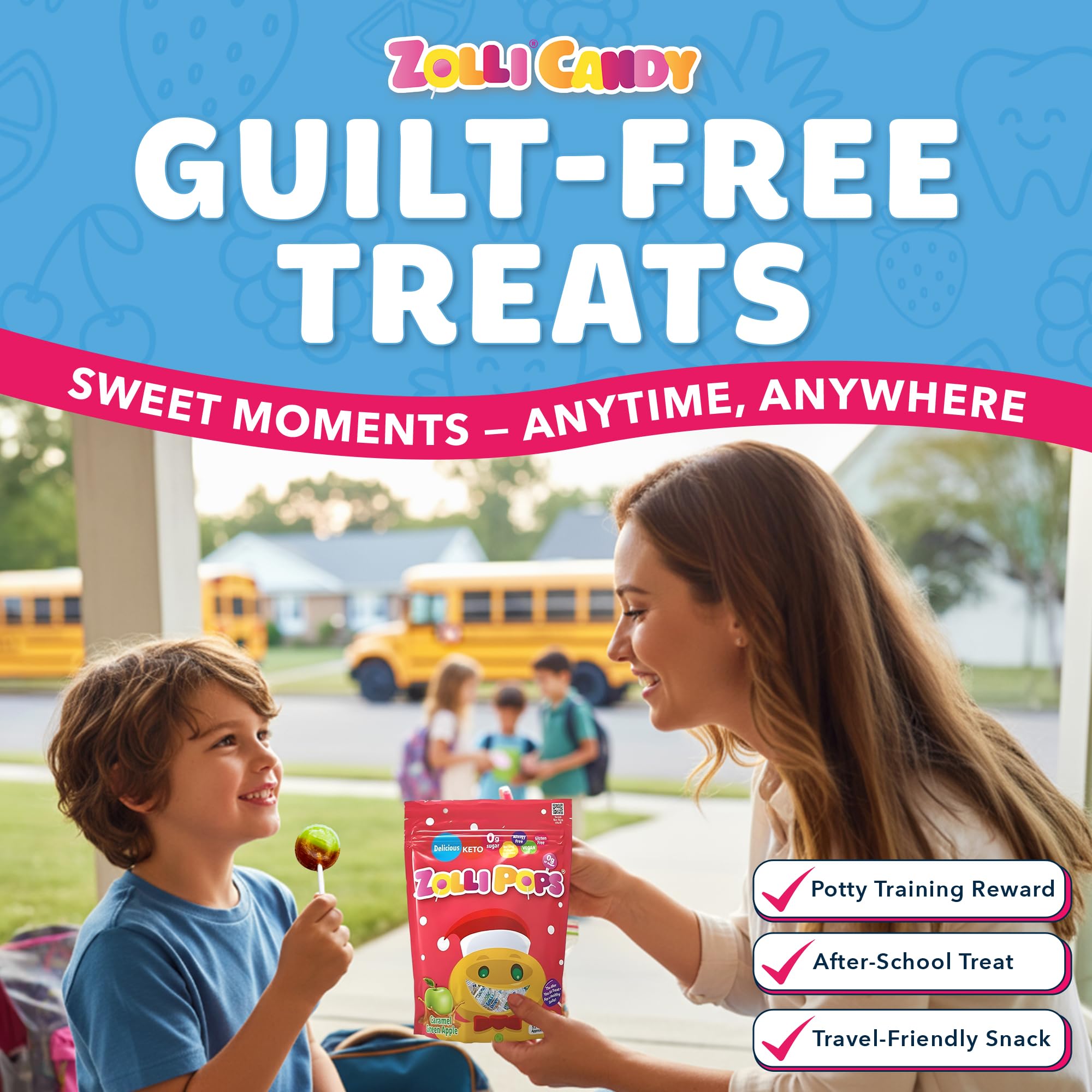 DELICIOUS SUGAR FREE CANDY THAT FIGHT CAVITIES. Zollipops zero sugar candy that kids love are dentist-approved lollipops that promote healthy smiles. Using xylitol candy and erythritol, these sugar free lollipops for kids and toddlers are a cavity-fighting treat with no artificial dyes or added sugar. Perfect after lunch or after school.