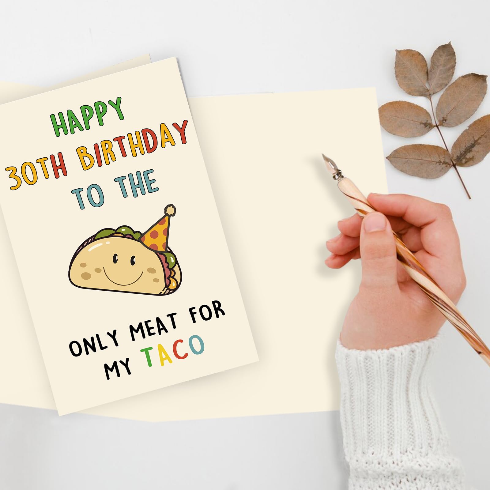 Funny Birthday Card for Him: Taco birthday card the cover reads "Happy 28th birthday to the only meat on my taco," making it an ideal gift for those who want to give him a fun birthday card.