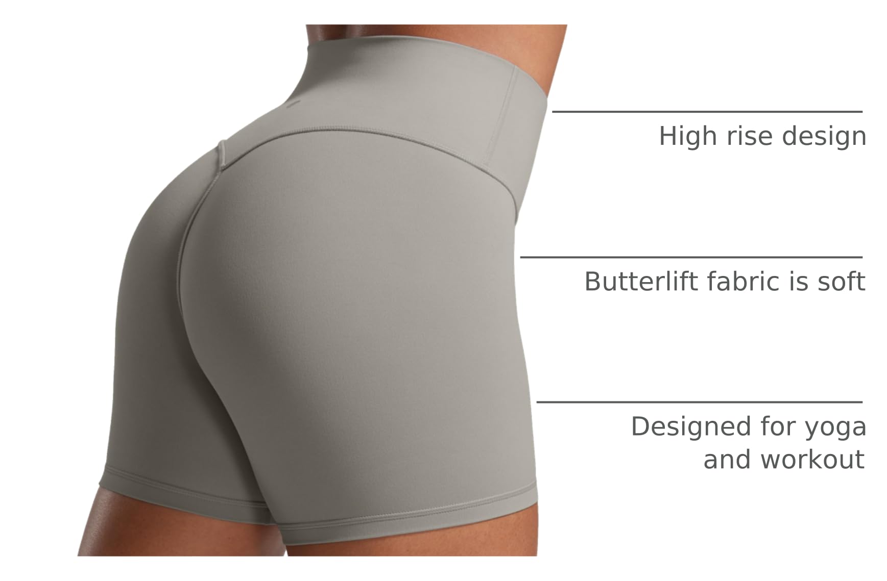High Rise, 4" inseam, intended to sit above mid thigh length