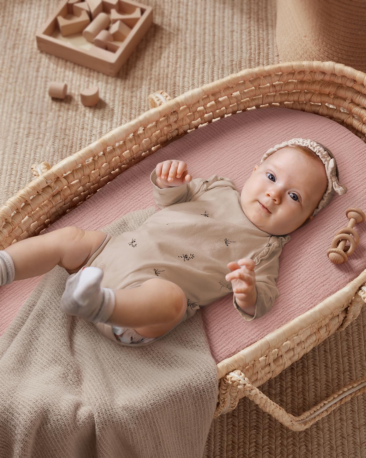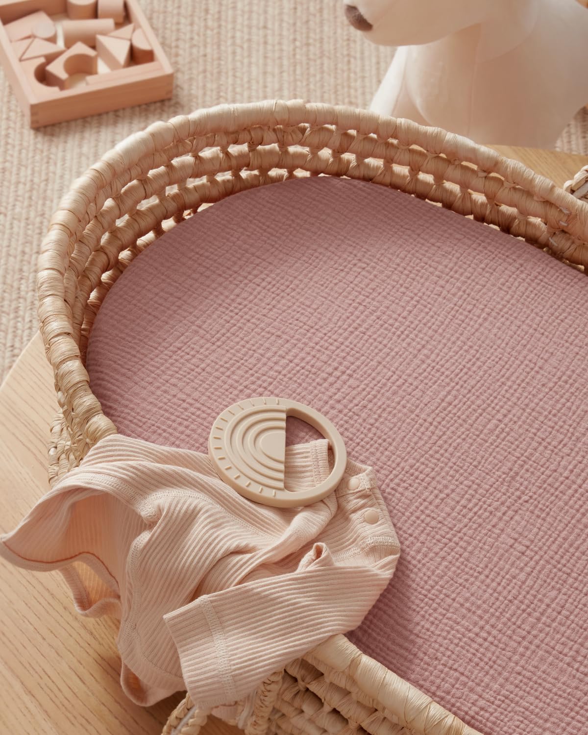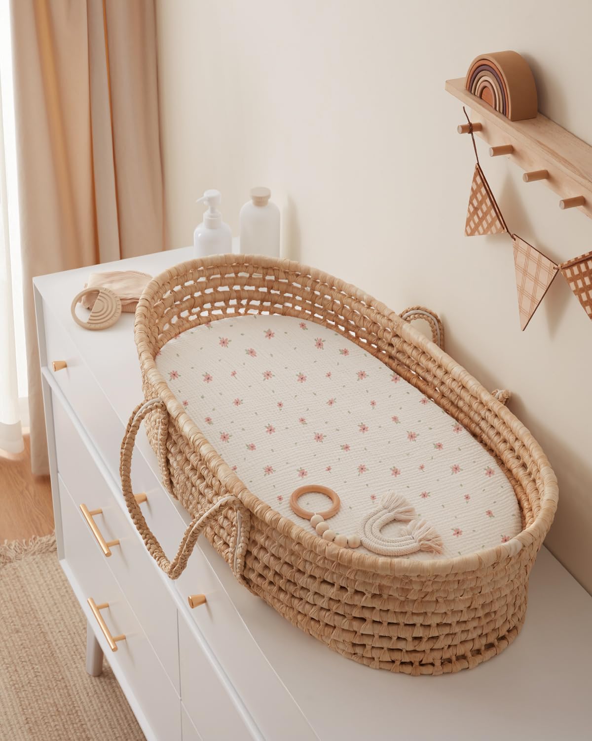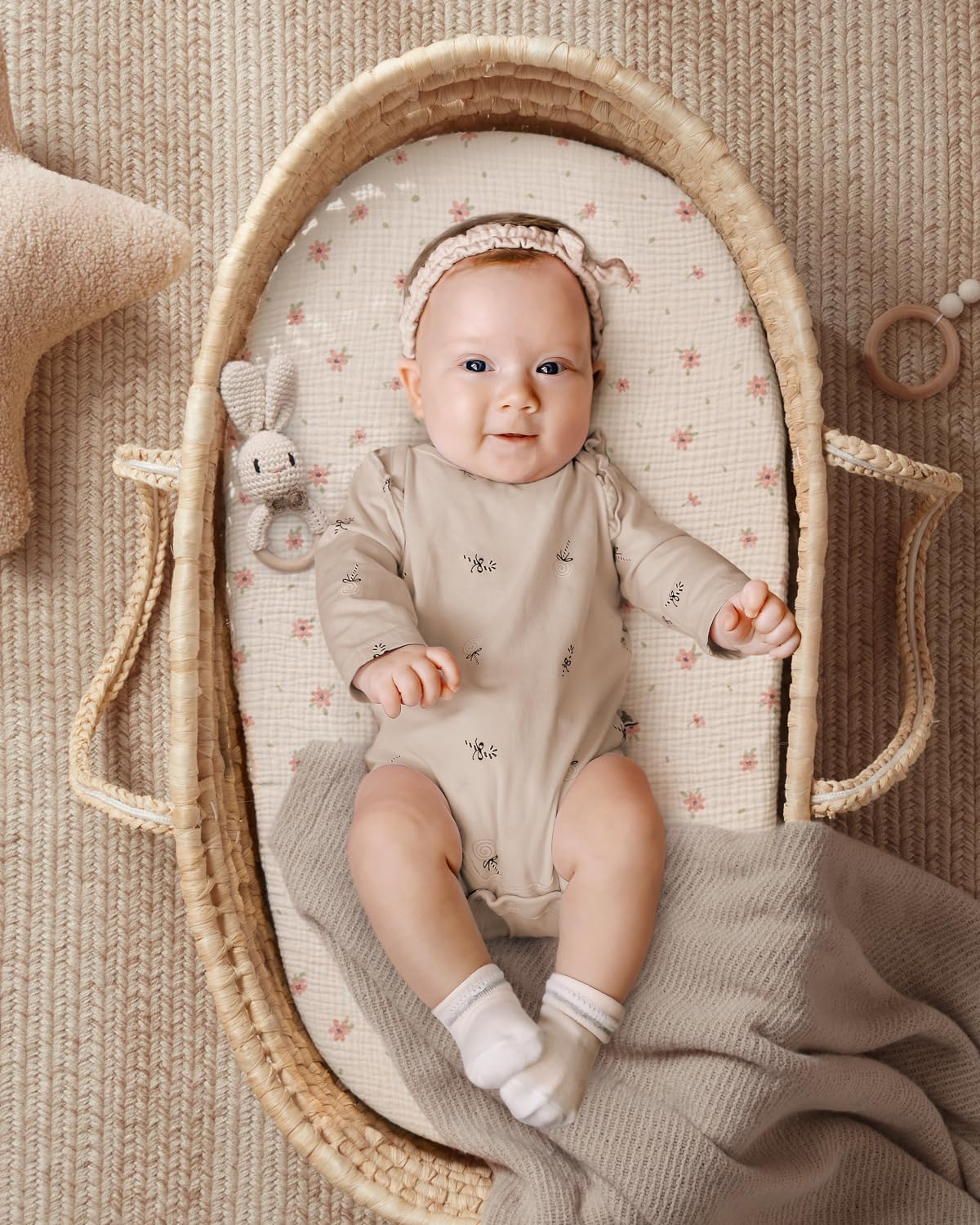 Nice Baby Essentials: With cute patterns and boho colours, the muslin bassinet sheets for boys and girls are chic and versatile to match your nursery, definitely a nice decoration