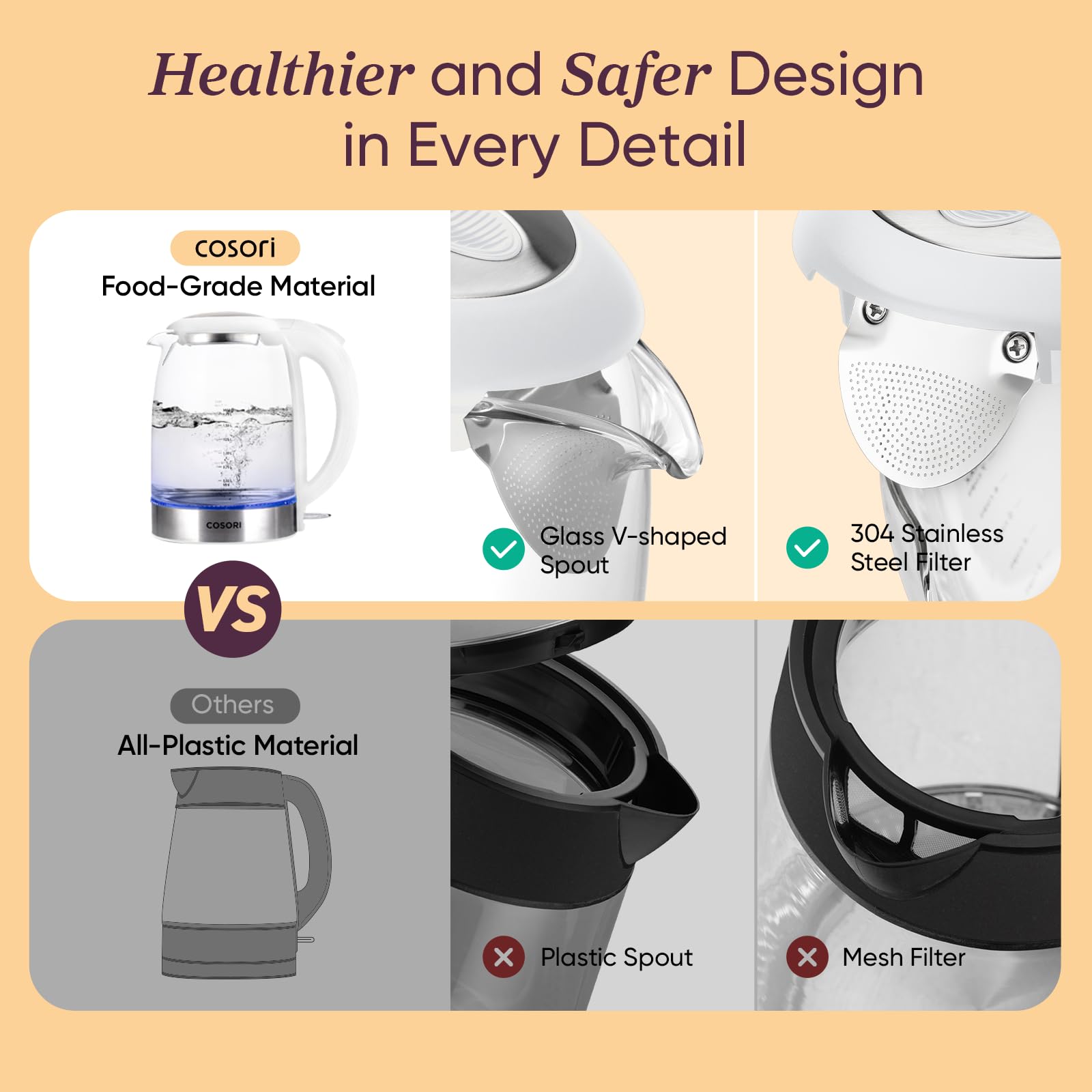 𝑺𝑼𝑷𝑬𝑹𝑰𝑶𝑹 𝑴𝑨𝑻𝑬𝑹𝑰𝑨𝑳𝑺: Crafted with high-quality borosilicate glass and 304 stainless steel, the electric tea kettle ensures the safety and purity of your water.