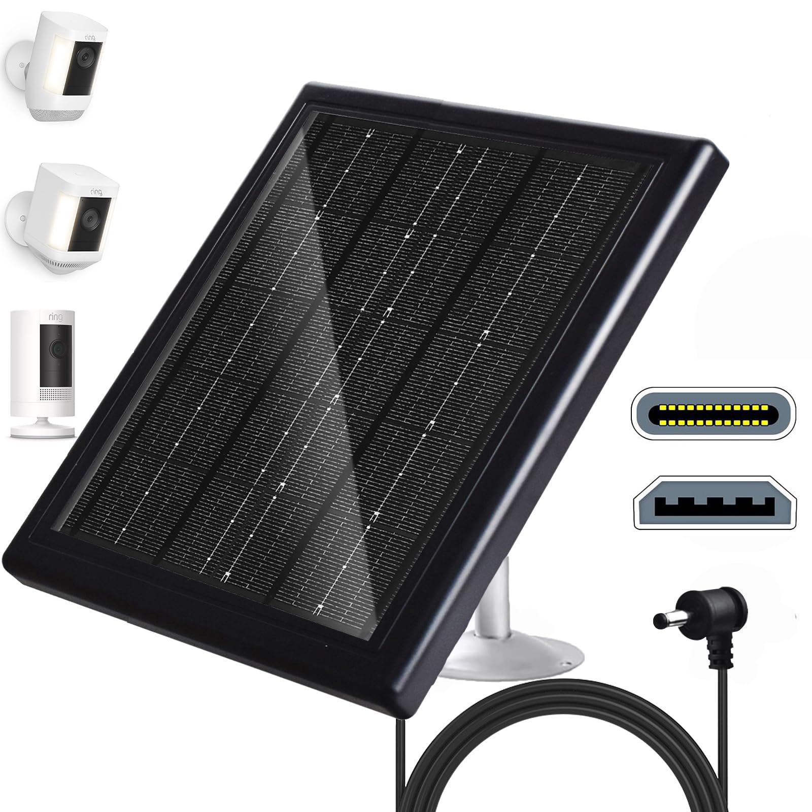 Ring Camera Solar Panel 5V 5W Outdoor Solar Battery Charger for Ring Spotlight Camera,Stick Up Camera with IP65 Waterproof, 16.4ft Cable, 360° Adjustable Bracket (Black,1 Pack)