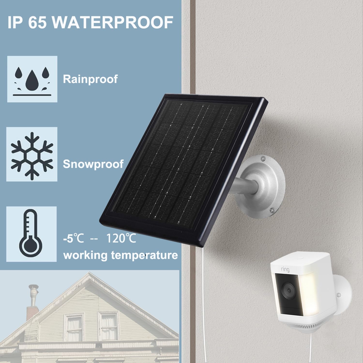 Non-Stop Power Supply:The Ring Camera Solar Panel can absorb sunlight and convert it into electrical energy continuously, so you will not concerned about the camera running out of power and have to take out the camera frequently to charge the battery.