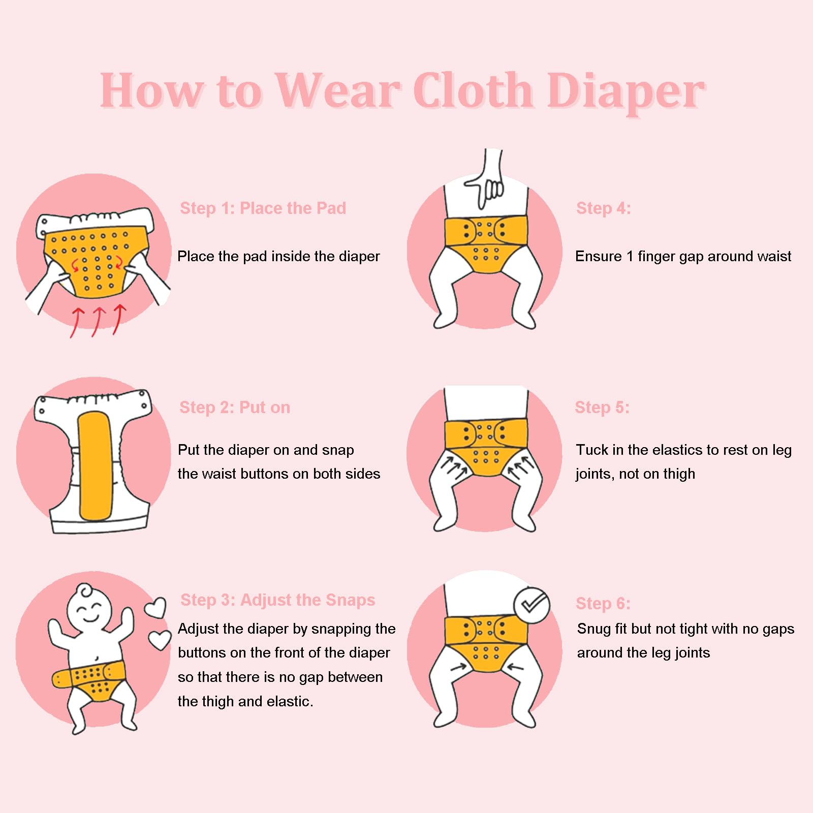 One Size fit 0-3 Year Babies: Cloth Diapers with adjustable snaps fits babies or toddlers from 8 to 35 pounds and grows with your little one. You can adjust the diaper to your desired size (S, M or L) by snapping onto different rows of buttons on the diaper.