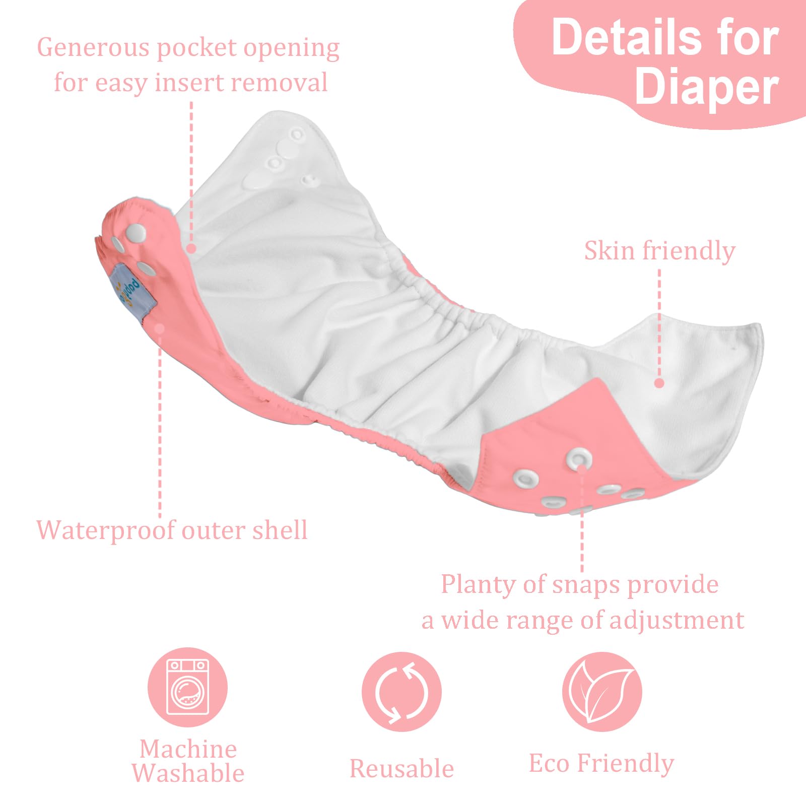 Save Money & Environmental-Friendly: Cloth diapers with inserts are less expensive than disposable diapers and create less waste. Our cloth diapers are completely free of dioxins, sodium polyacrylate and other chemicals, do not contain any BPA, Phthalate, Latex or Lead as well.