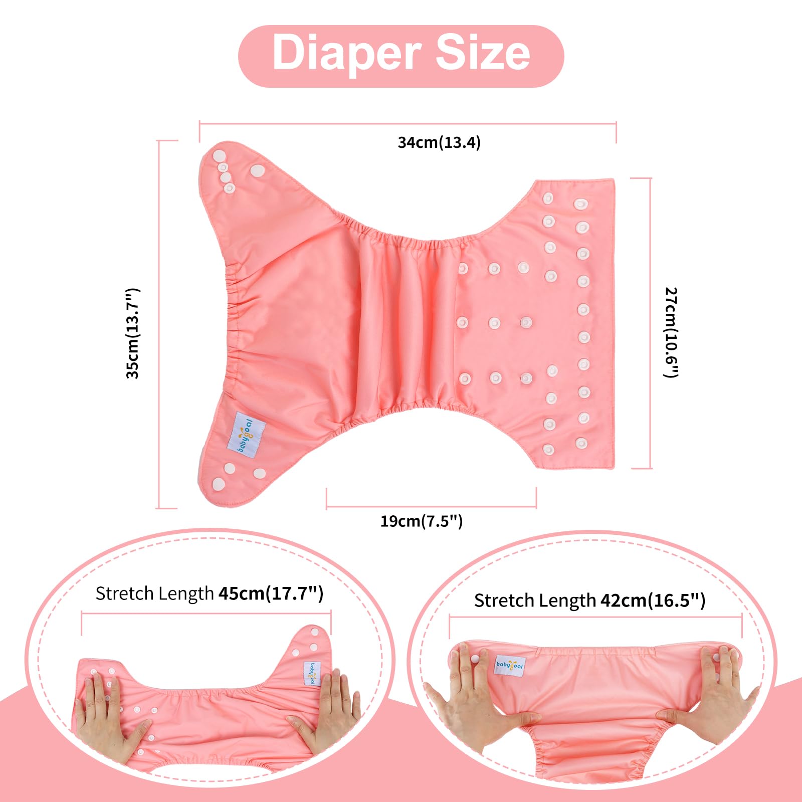 Strong Absorbency with Breathability: These baby diapers are reusable and fully machine washable, and will become more absorbent when they are washed. The rayon from bamboo inserts are of high softness and comfort, keeping your baby's skin dry and avoiding less rashes.