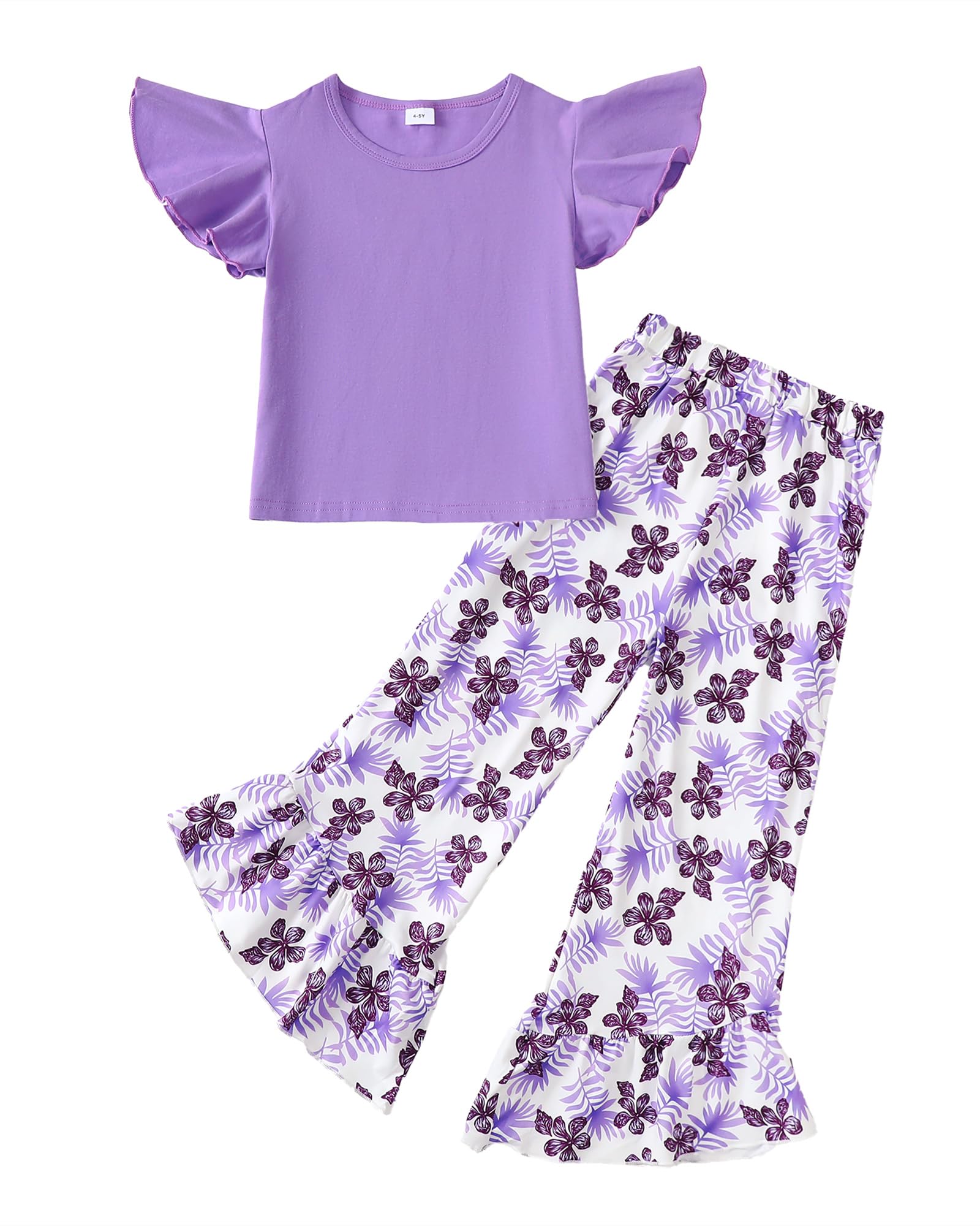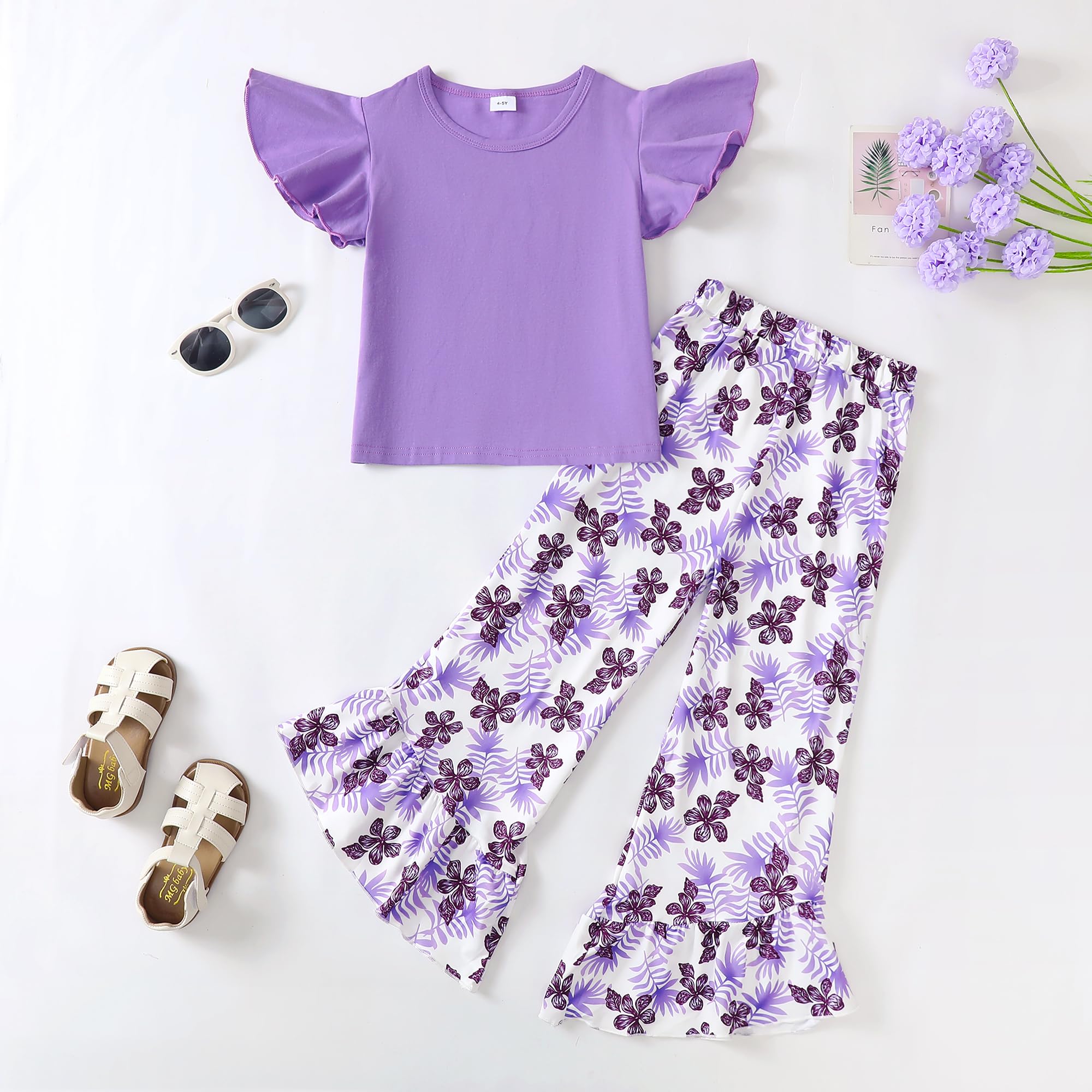 Summer Girl Fashion Clothes, crew neckline t shirt for kid, plain short sleeve top summer girl outfits, floral/leopard/plaid girl's pant set, chic toddler girl clothes set, trendy look for all little girl