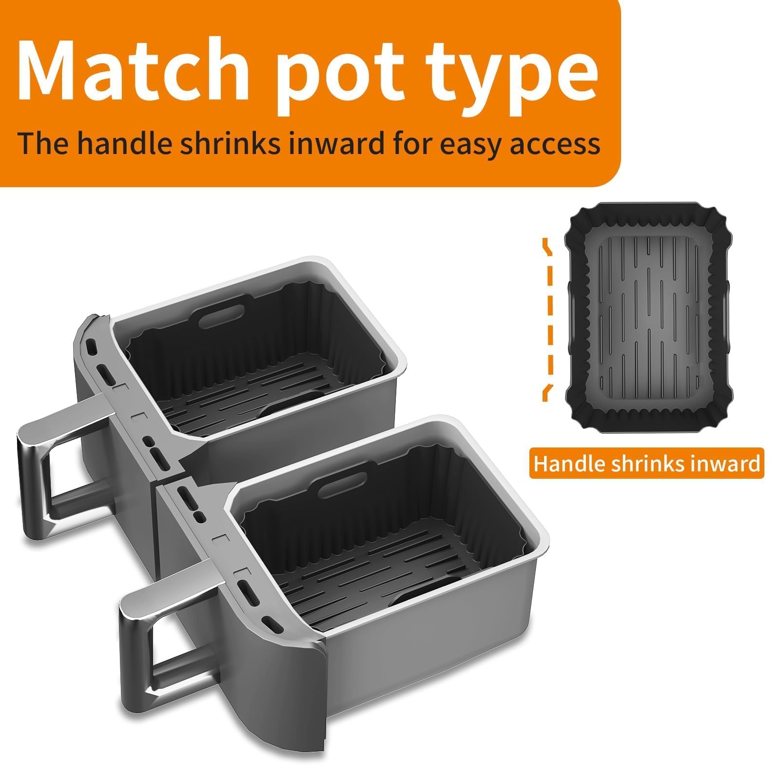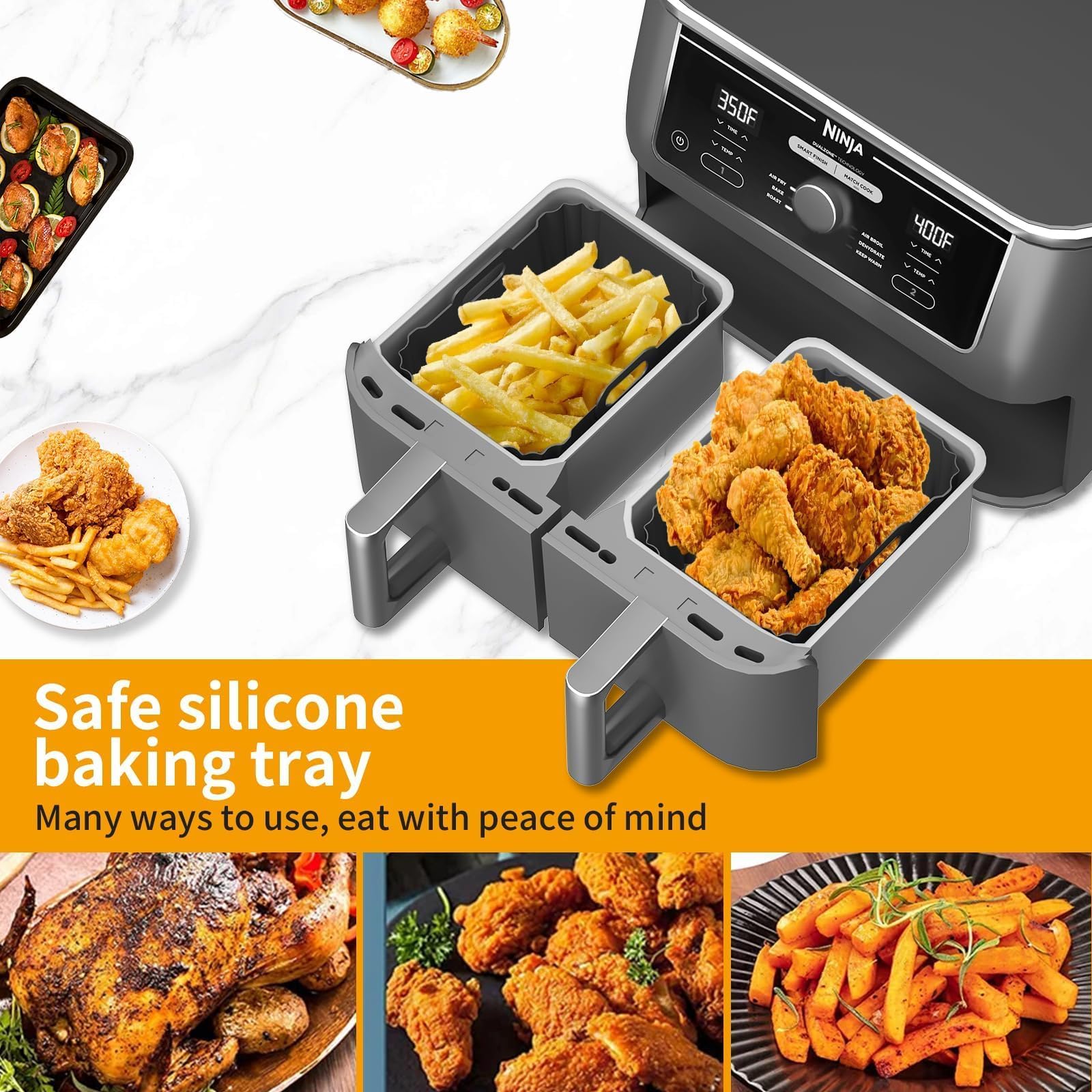 Air Fryer Liners Reusable & Non-Stick -The ninja dual air fryer liners are made of food-safe silicone material, non-toxic and non-stick,durable and heat-resistant,can withstand temperatures up to 450°F.