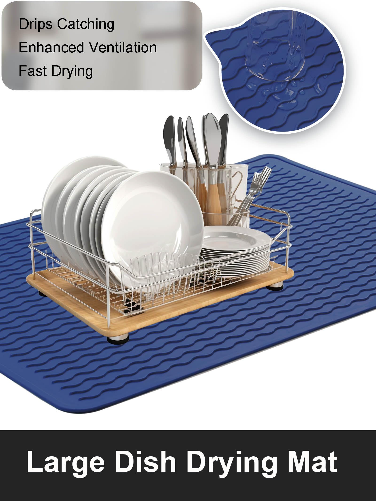 [Dish Drying Mat] This uniquely designed wave ridge can enhance air circulation for improved ventilation while capturing drips from dishes, glasses, fruits, and veggies. Its high edges and waterproof bottom prevent spills, keeping countertops dry and pristine, making it the perfect kitchen drying mat.