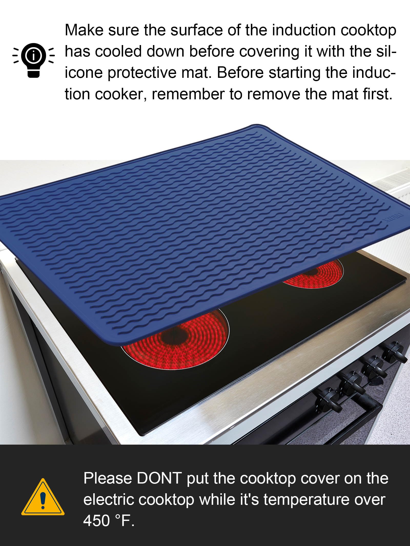 [Electric Stove Top Cover] Our 36" x 21" inches silicone glass stove top cover protector for electric stove is perfect for protecting your electric stove top, kitchen countertop, electric range top, table or washer dryer top from scratches, spills, stains, scrapes and dirt. Designed to fit most glass-topped induction cookers, it instantly creates extra counter space for your culinary adventures.