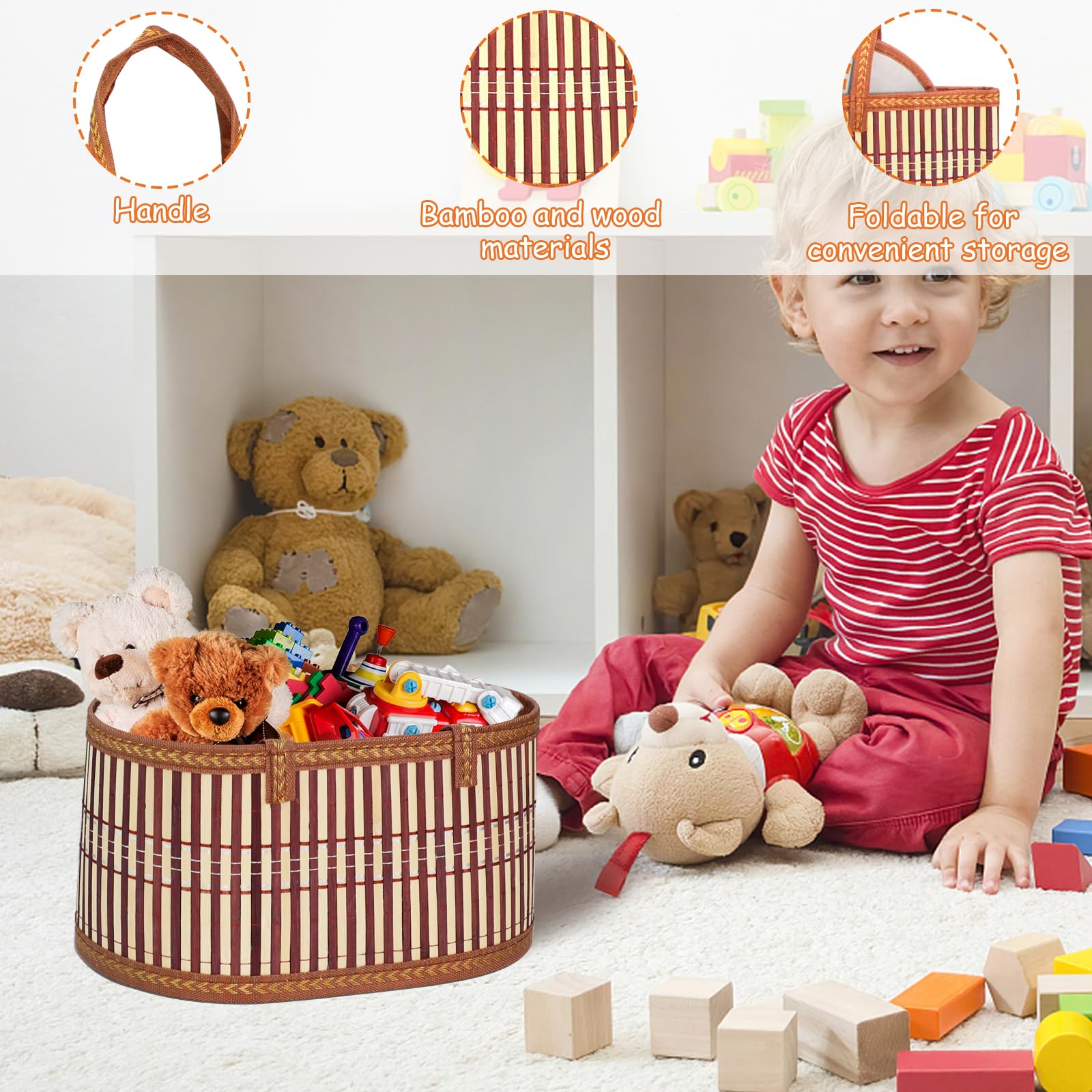 VERSATILE USE: This woven bamboo basket's design and size make it versatile enough. It can serve as storage for toys, books, or clothes, dog cat toys basket. Its versatility makes it a must-have for any home. Widely used in living room, kids room, bathrooms, bedrooms and so on.
