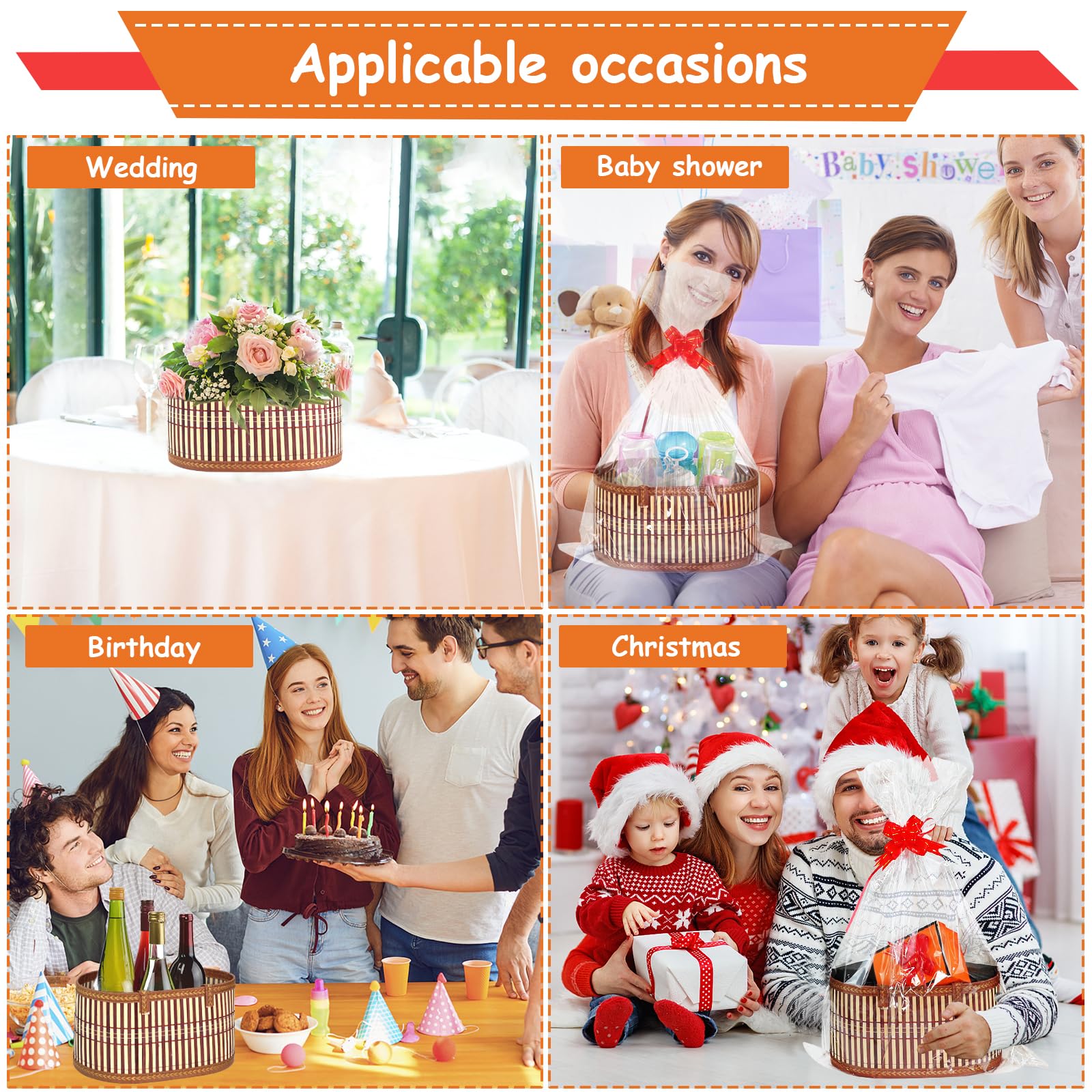 STURDY MATERIAL: This empty gift baskets to fill is made of high-quality bamboo and wood and can hold up to 10 lbs, so you don't have to worry about gifts falling. The material is non-toxic, safe and environmentally friendly, with strong quality and can be used repeatedly for a long time.