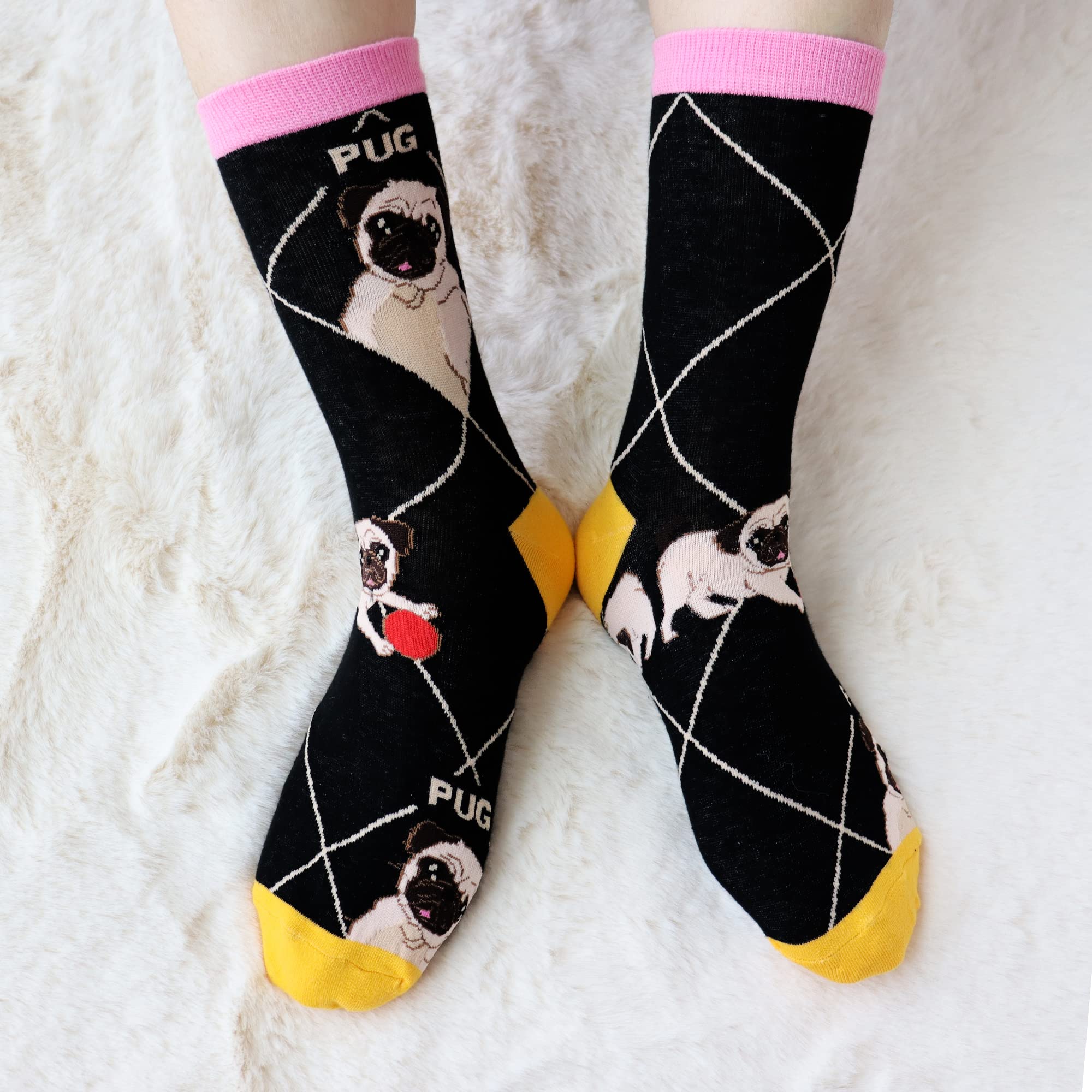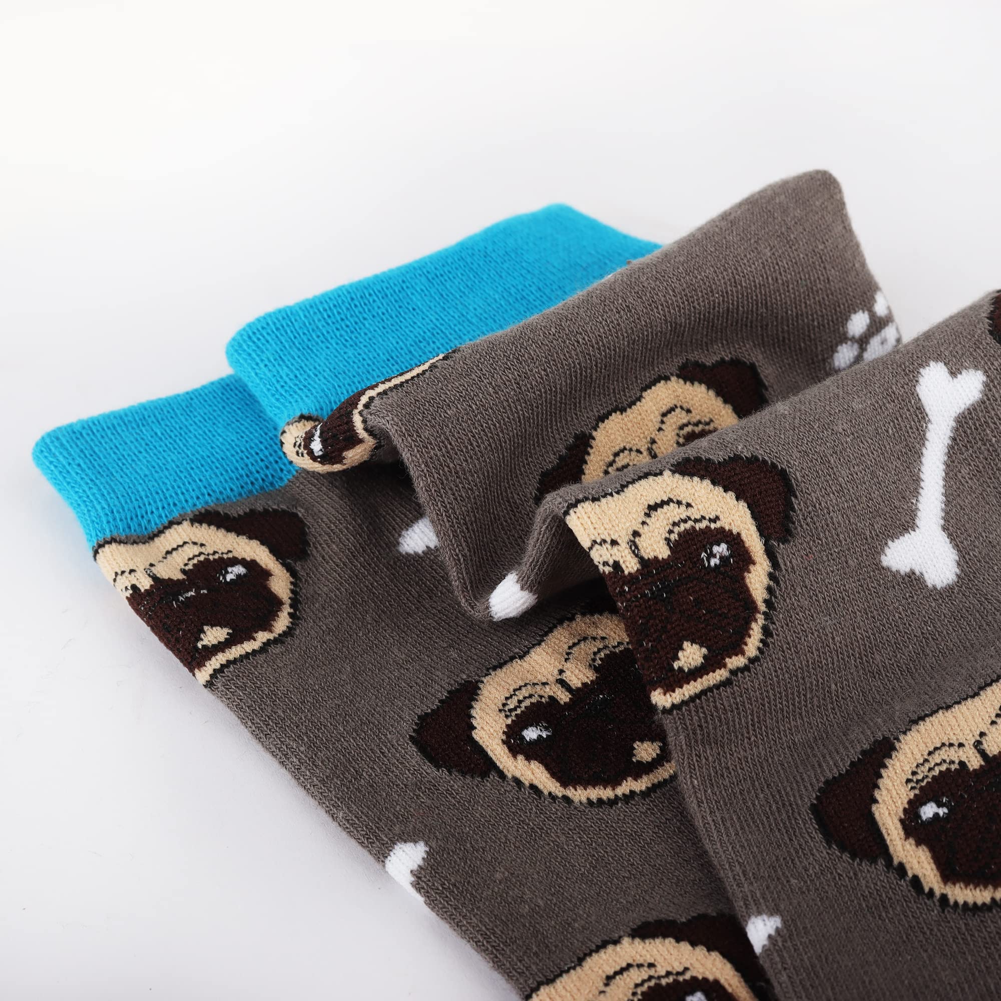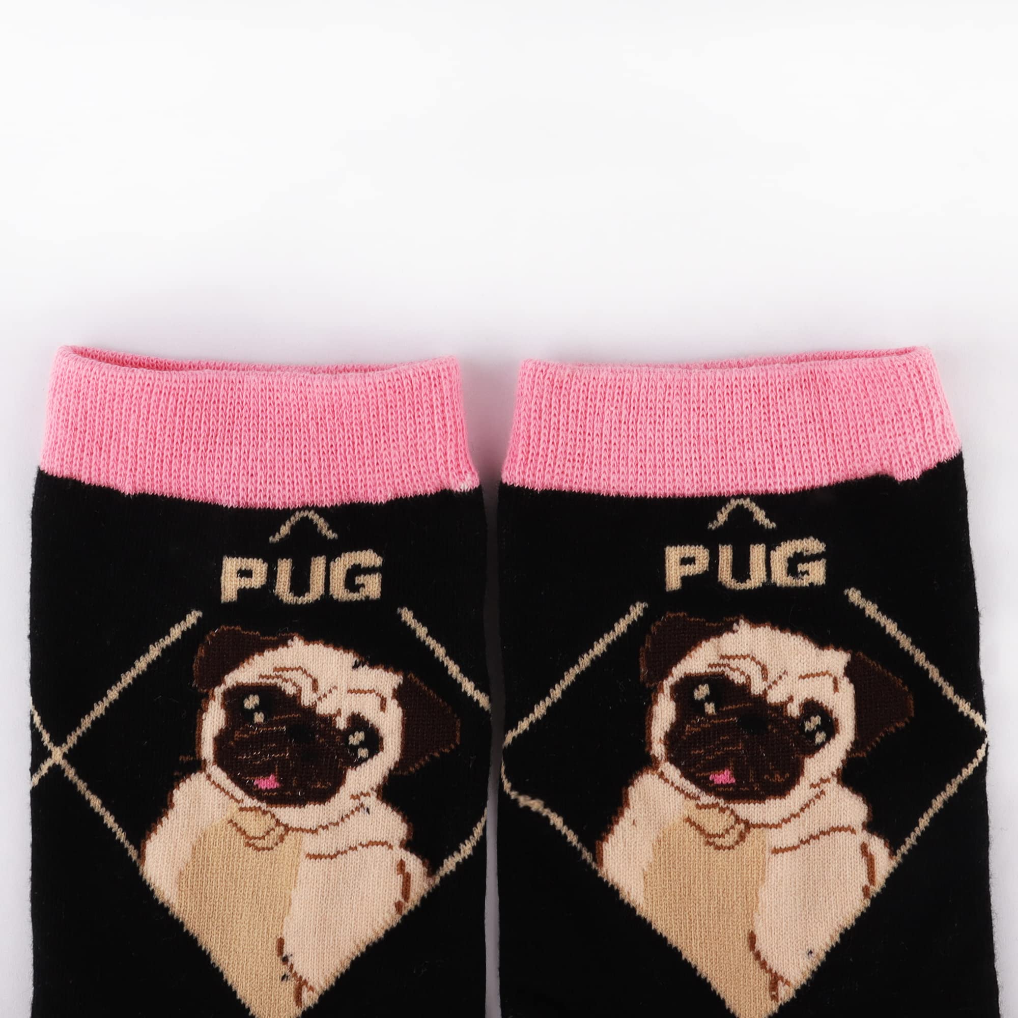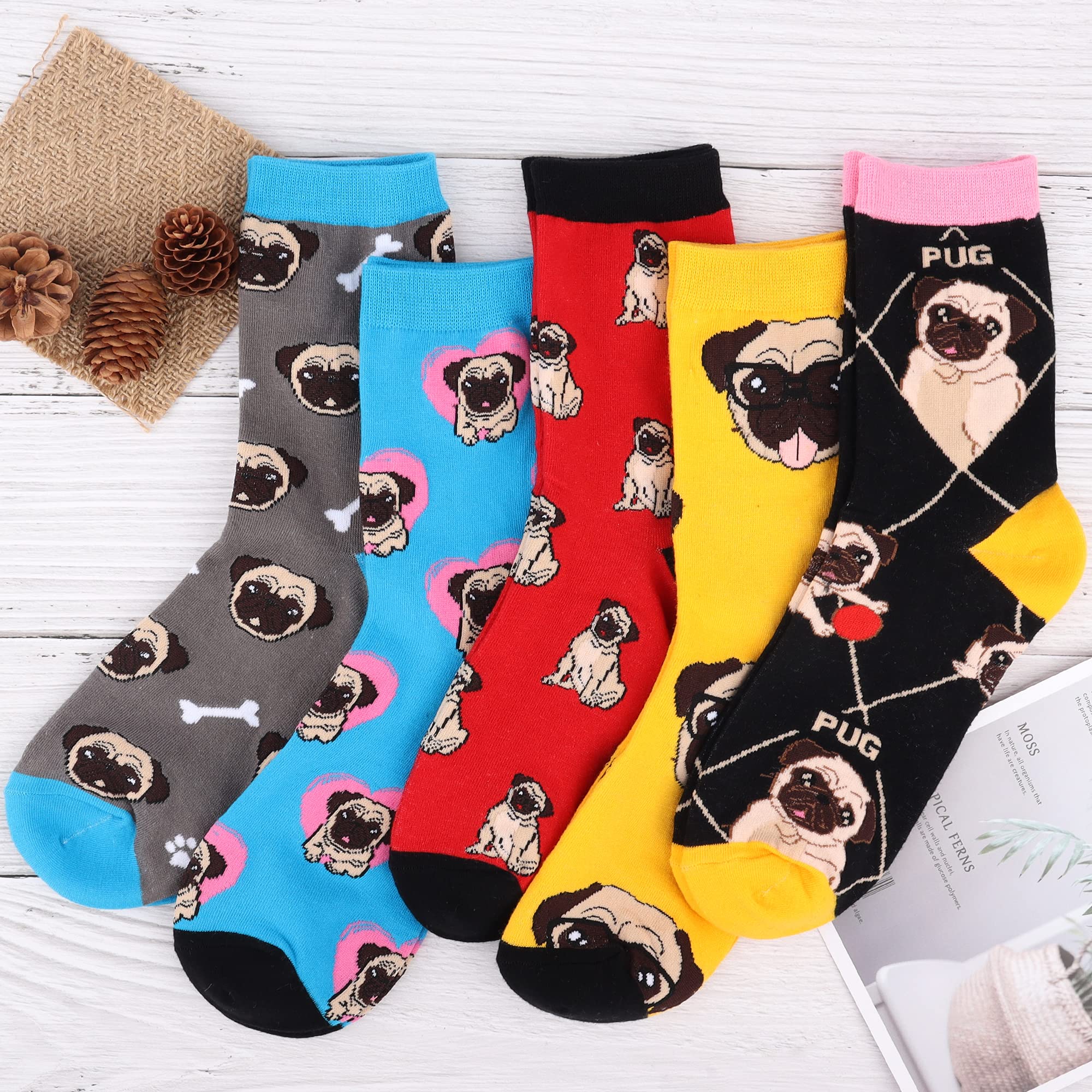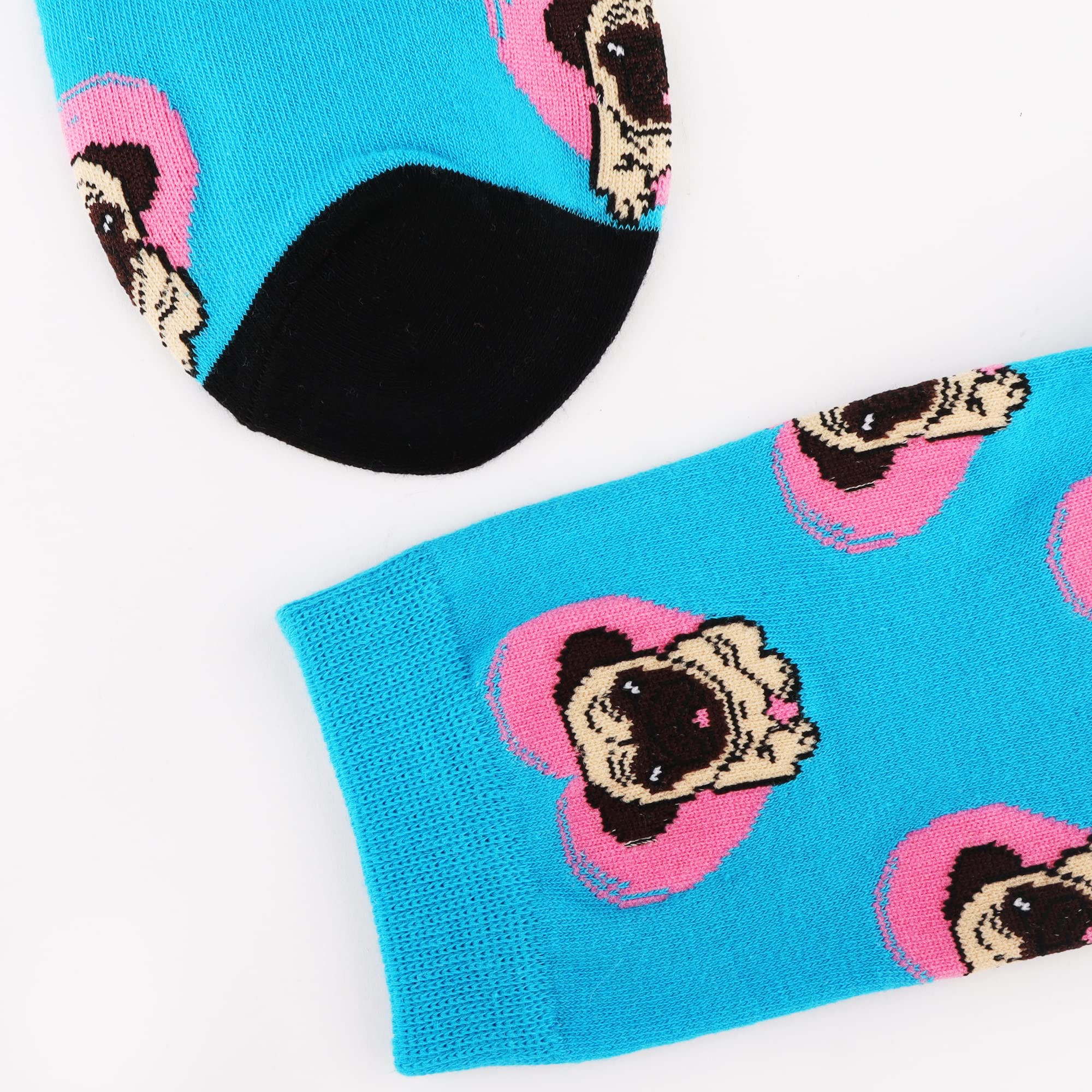 5 PAIRS PUG SOCKS -- Very colorful and attractive pug pattern socks. Every pair of socks with different colors and patterns. Fun and cute enough to get compliments!