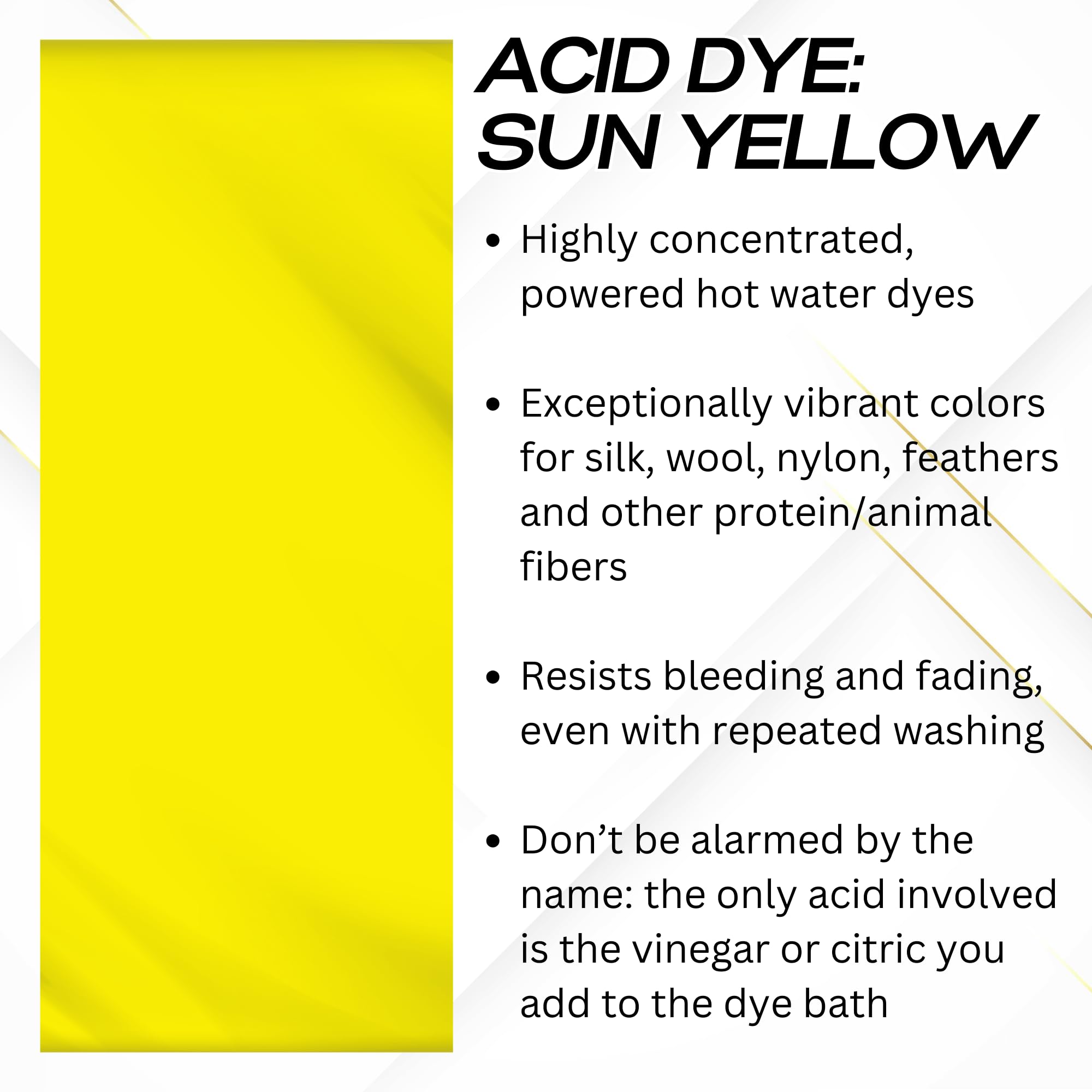 Consistent Professional Results - Highly concentrated powdered hot water acid dye delivers level, uniform color during immersion dyeing