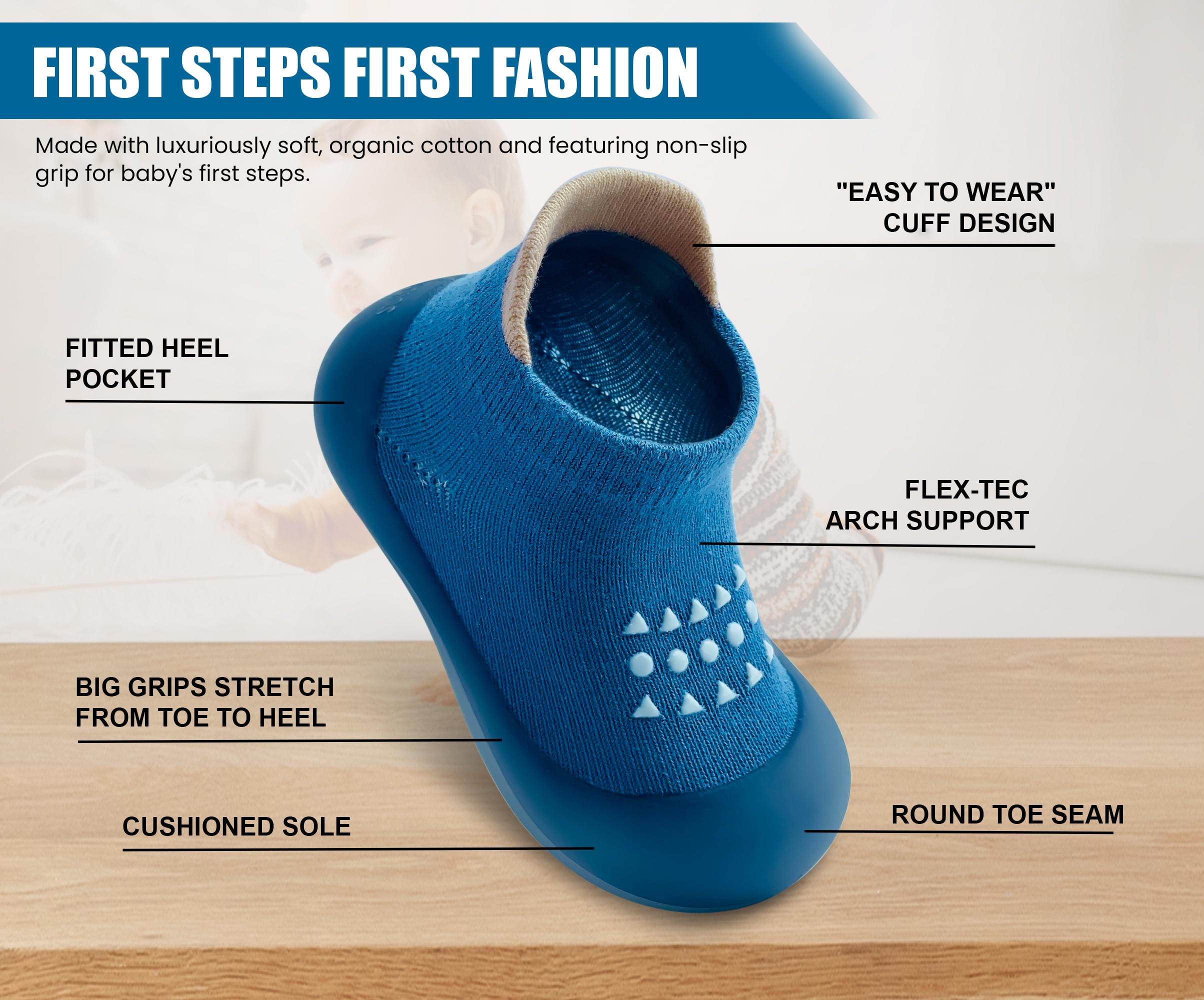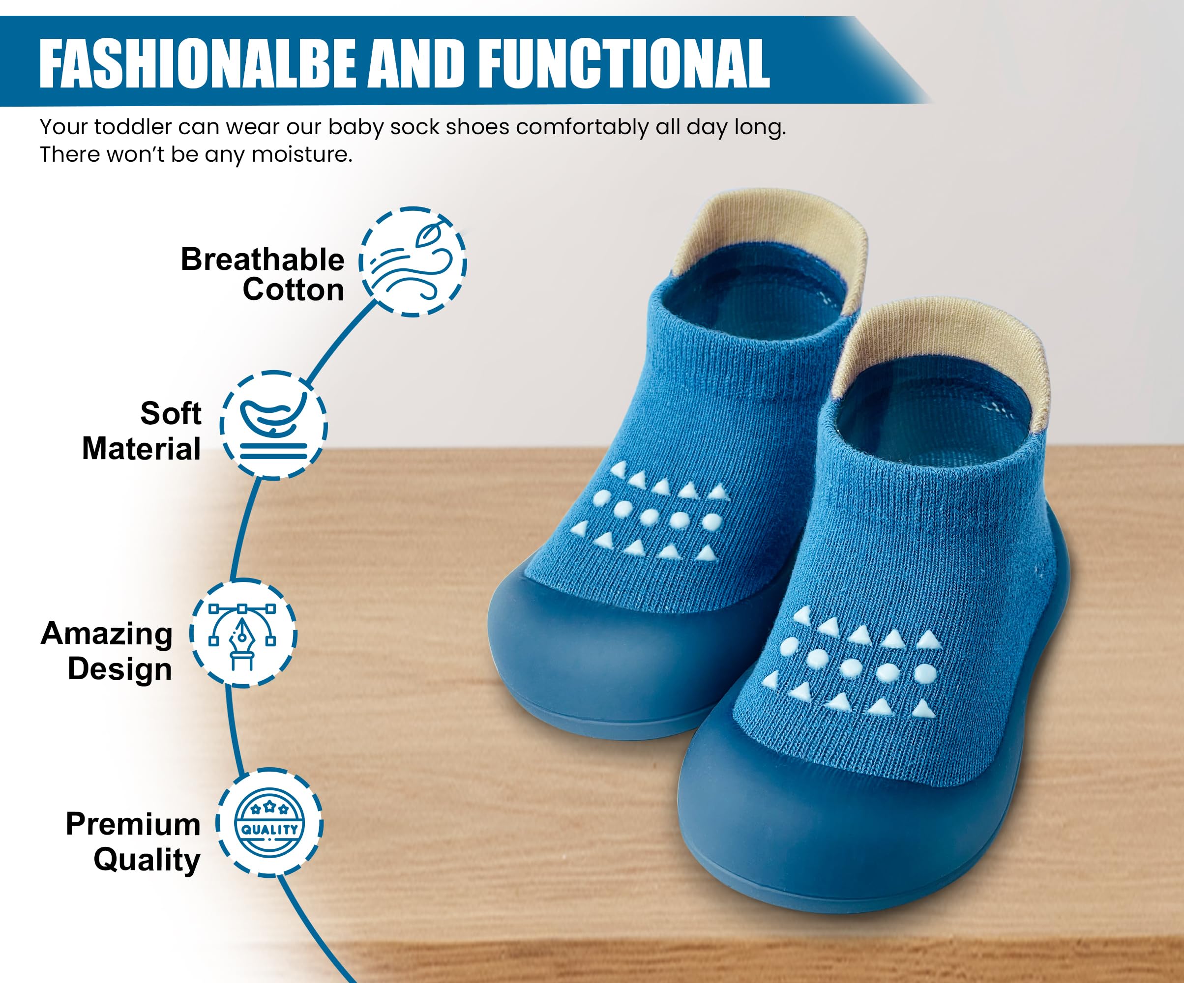 NON SLIP - Sock shoe sole is made of non-slip silicone material. In addition, thanks to baby walking shoes design, it touches the ground flat. It allows your toddlers to walk safely on different surfaces. At the same time, baby sock shoes prevent damage from sharp objects on the ground.