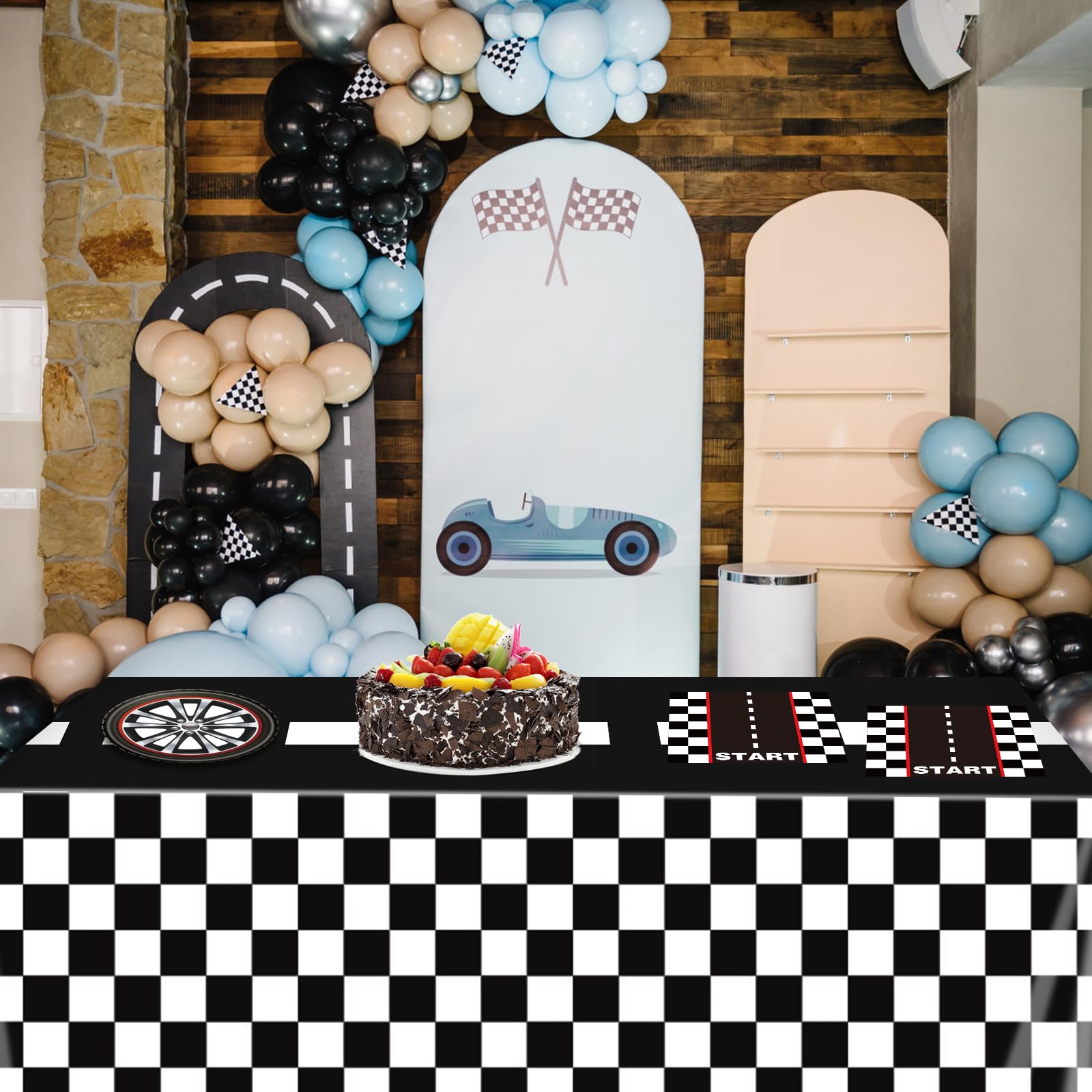 🏁【Wide Occasions】Racing birthday party supplies can widely used in race car party decorations, black and white checkered flag race car birthday party decorations, car birthday party decorations, boys birthday party, let your friends and family at a enjoyable party have a great time