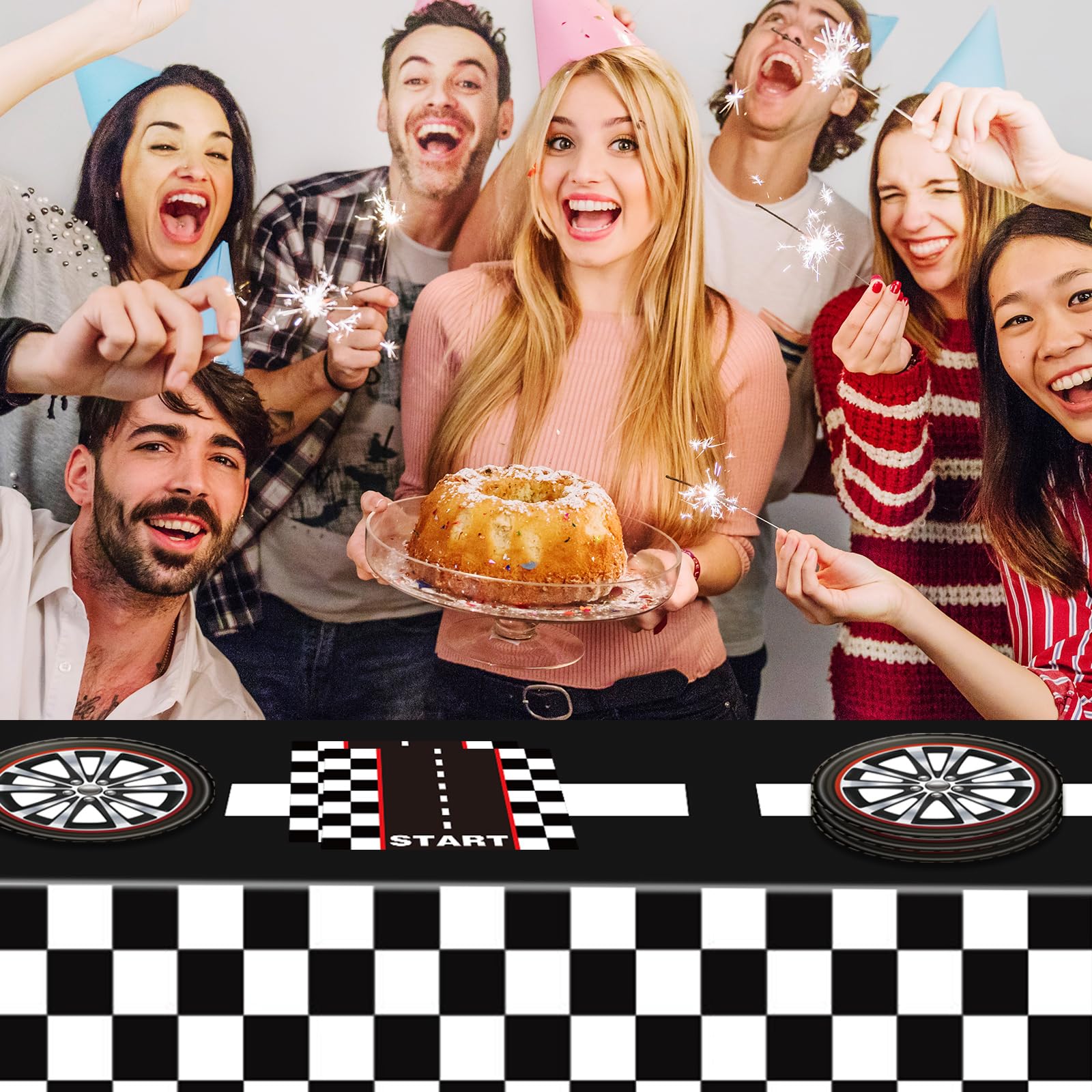 🏁【Race Car Party Tableware】The checkered flag party supplies including 20pcs 7 inch wheels plates, 20pcs soft napkins and 1pcs plastic tablecover, 41 pieces in total. If you and kids are a racing enthusiast, you can't miss this race car tableware set for the race car themed party