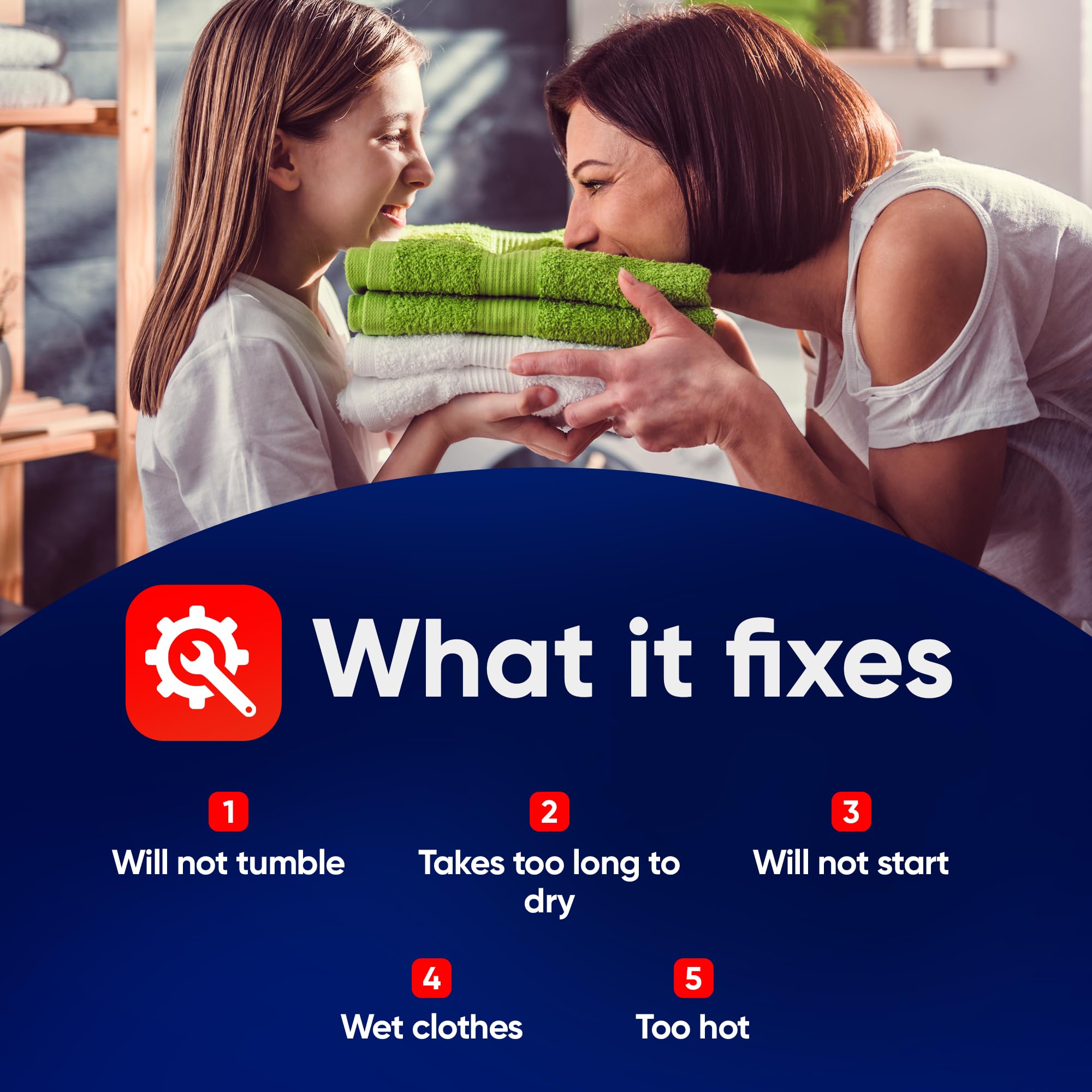 SAVE TIME SAVE MONEY: This is an inexpensive way to fix or repair a dryer. This part fixes the following symptoms: Will not tumble - Noisy - Will Not Start - No heat or not enough heat. You can send us your dryer model number and will confirm if it fits.