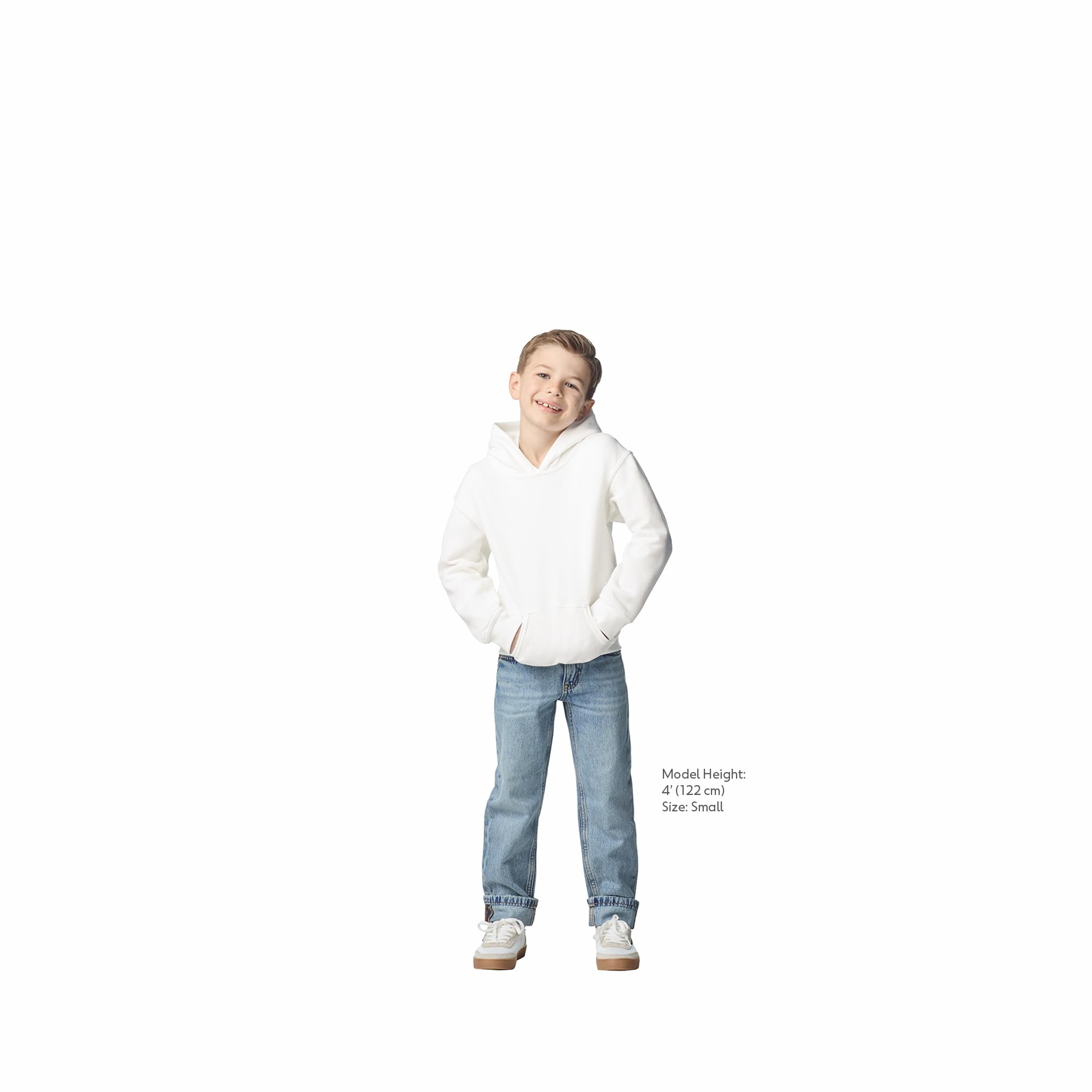 Description Kids play hard. The Gildan Youth Hooded Sweatshirt works just as hard to keep up with whatever they throw at it. From the backyard to the playground, with a double-lined hood and soft, pill-resistant air-jet soft yarn, it delivers long-lasting soft comfort along with a smooth, decorator-friendly, finish.