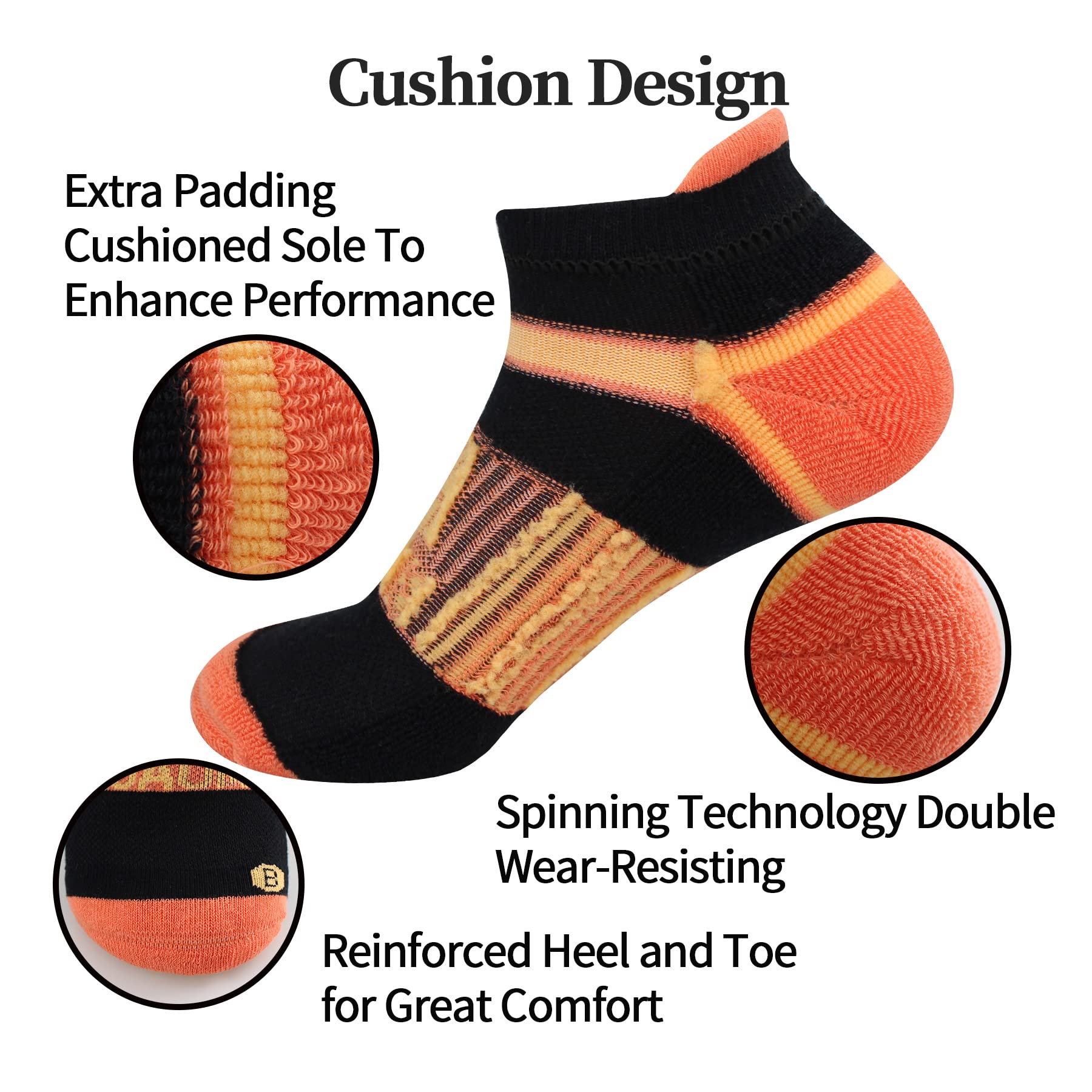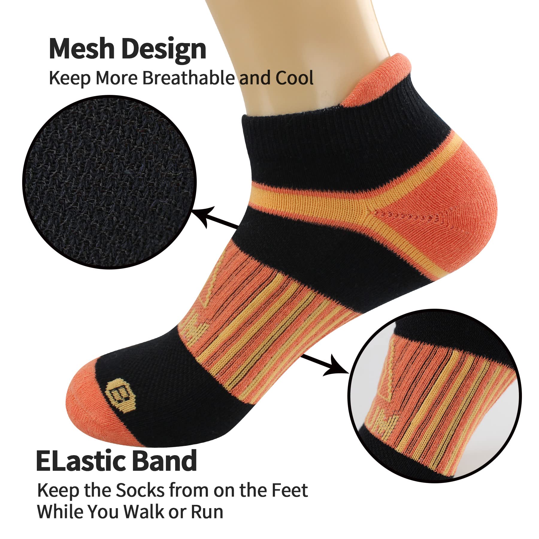 MAX CUSHIONING:Max Cushioning place in areas of high impact to reduce sock and foot pain during sports or daily activity,Comfortable to wear all day without irritating your feet skin. Arch support to improve foot arch fatigue and keep sock in place.