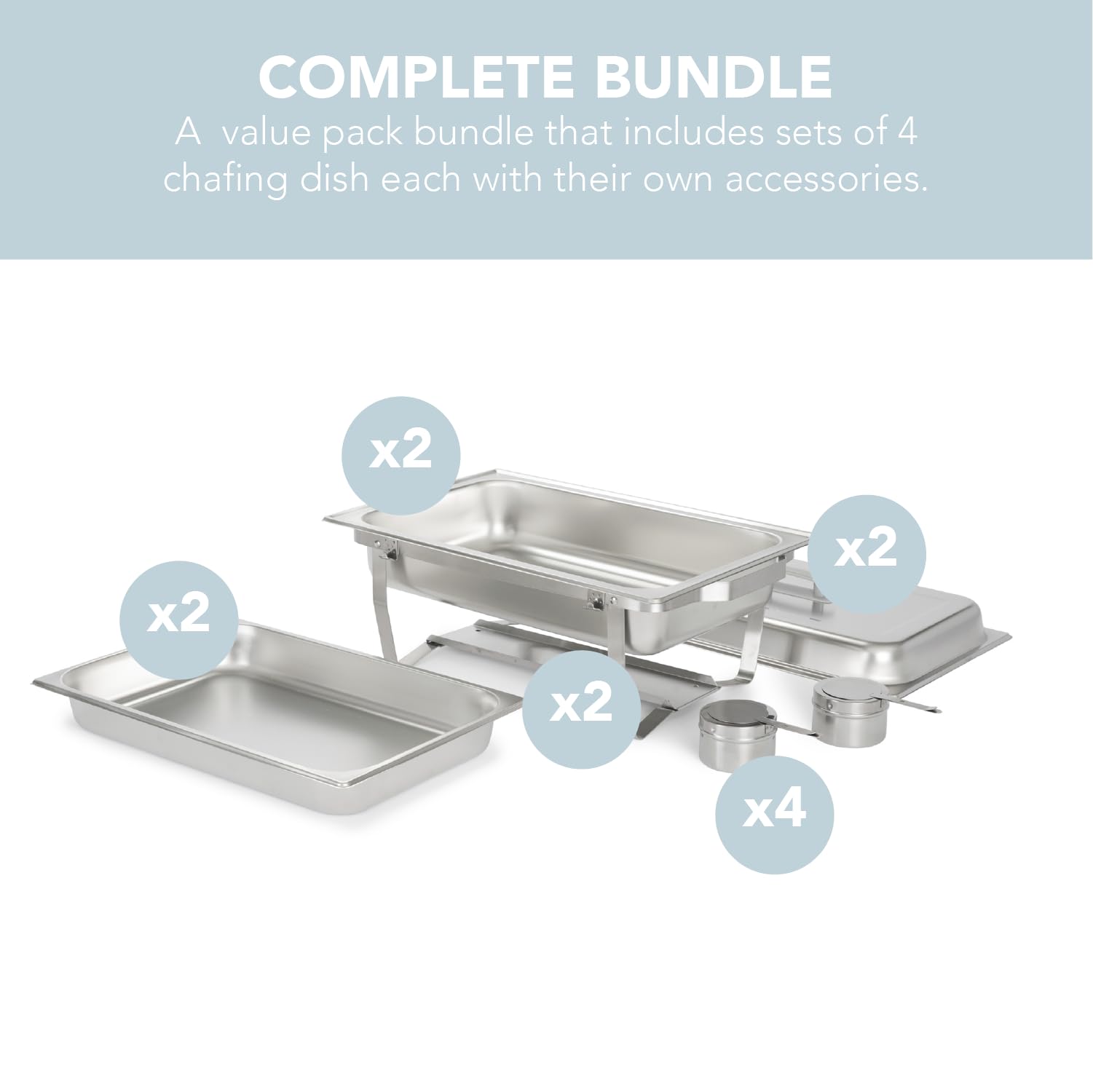 ✓ CONVENIENT STRUCTURE - Each Chafing Dish comes with 2 Fuel Holders, Frame, a Full-Size Pan Tray, and Lid. The Chafing dish also has handles to ensure that the product can be moved with ease.