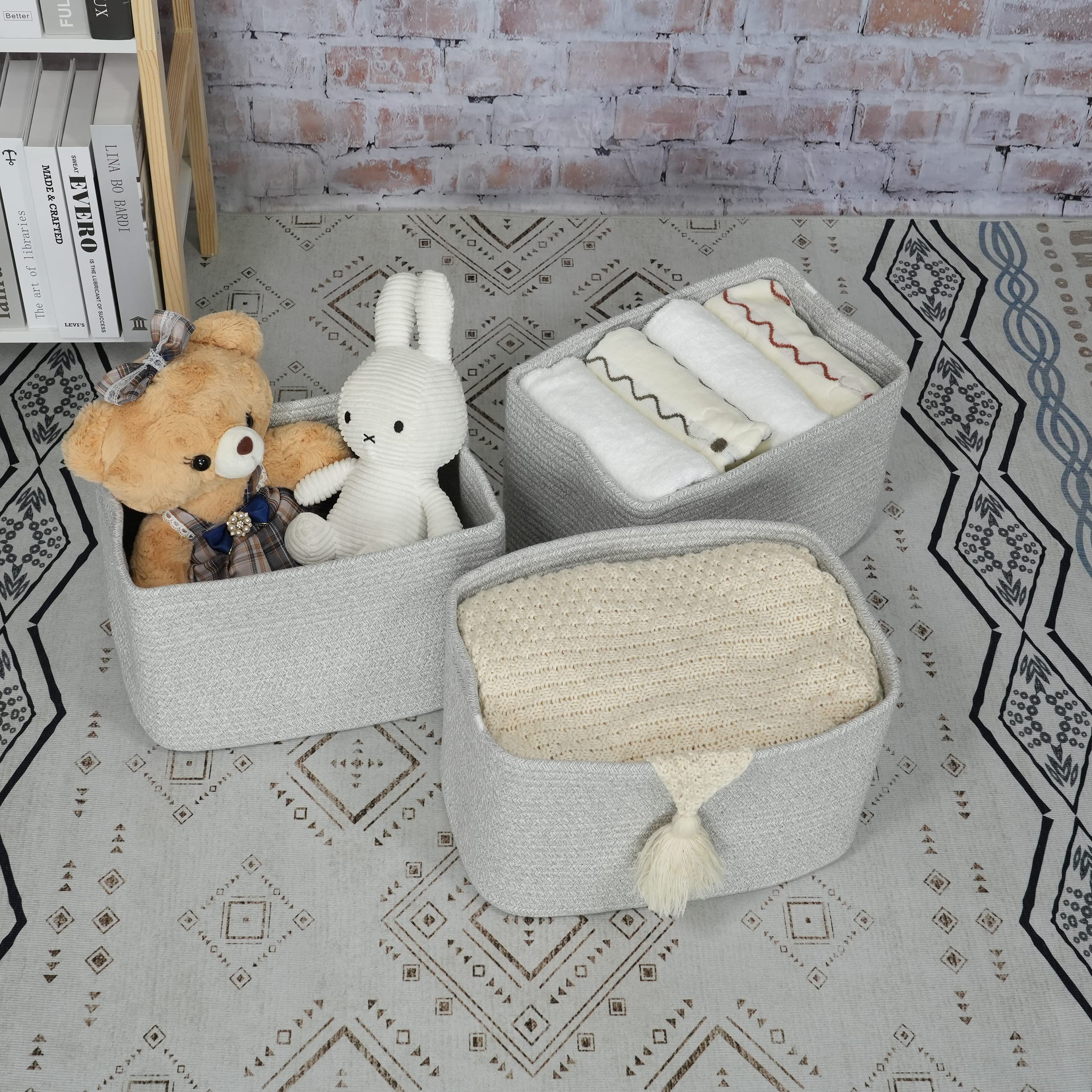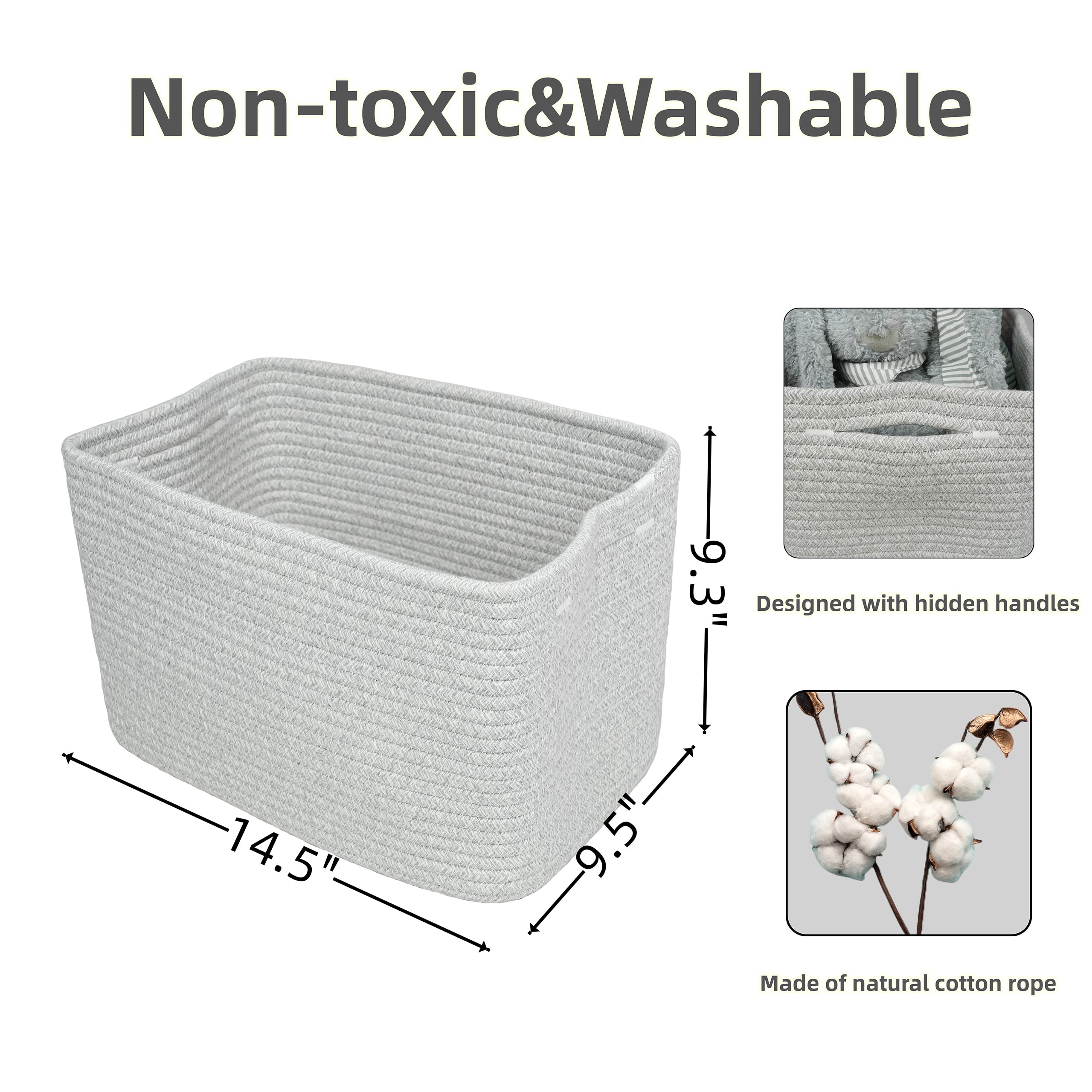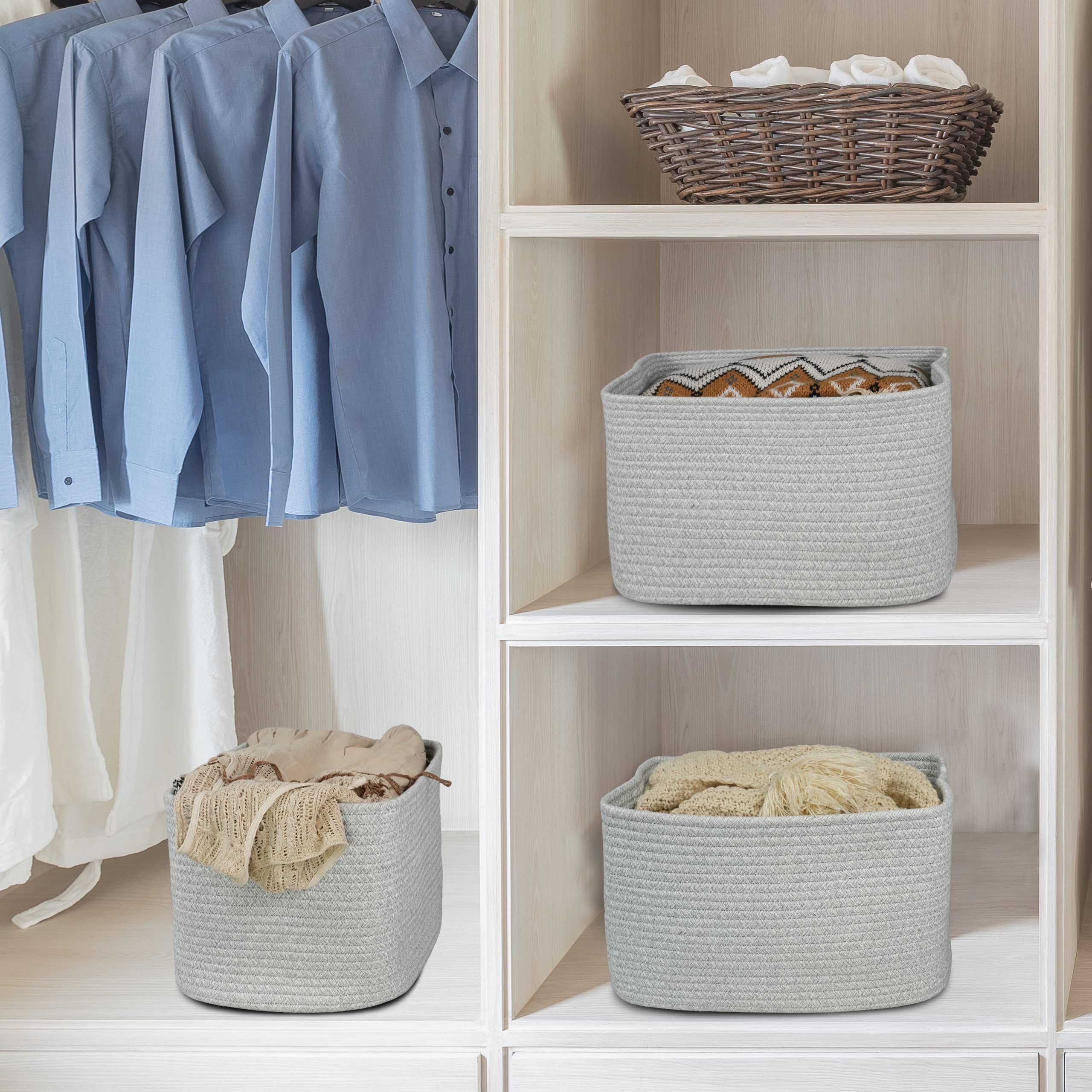 Cotton Rope storage Basket Bins Woven Basket for Organizing Shelves 14.5X9.5X9.3“ Rectangle Decorative Baskets For storage Clothes Toys Books Towels Square Wicker Nursery basket organizer 3 pack grey