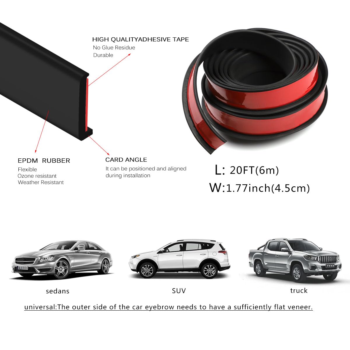 【Size】Product size: 20 feet [6 meters] long, [4.5 centimeters] wide. It can be cut freely as required, and is applicable to most cars, SUVs and trucks.