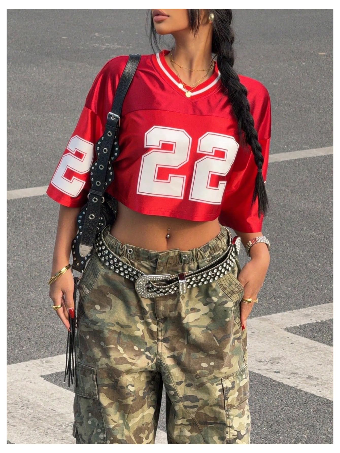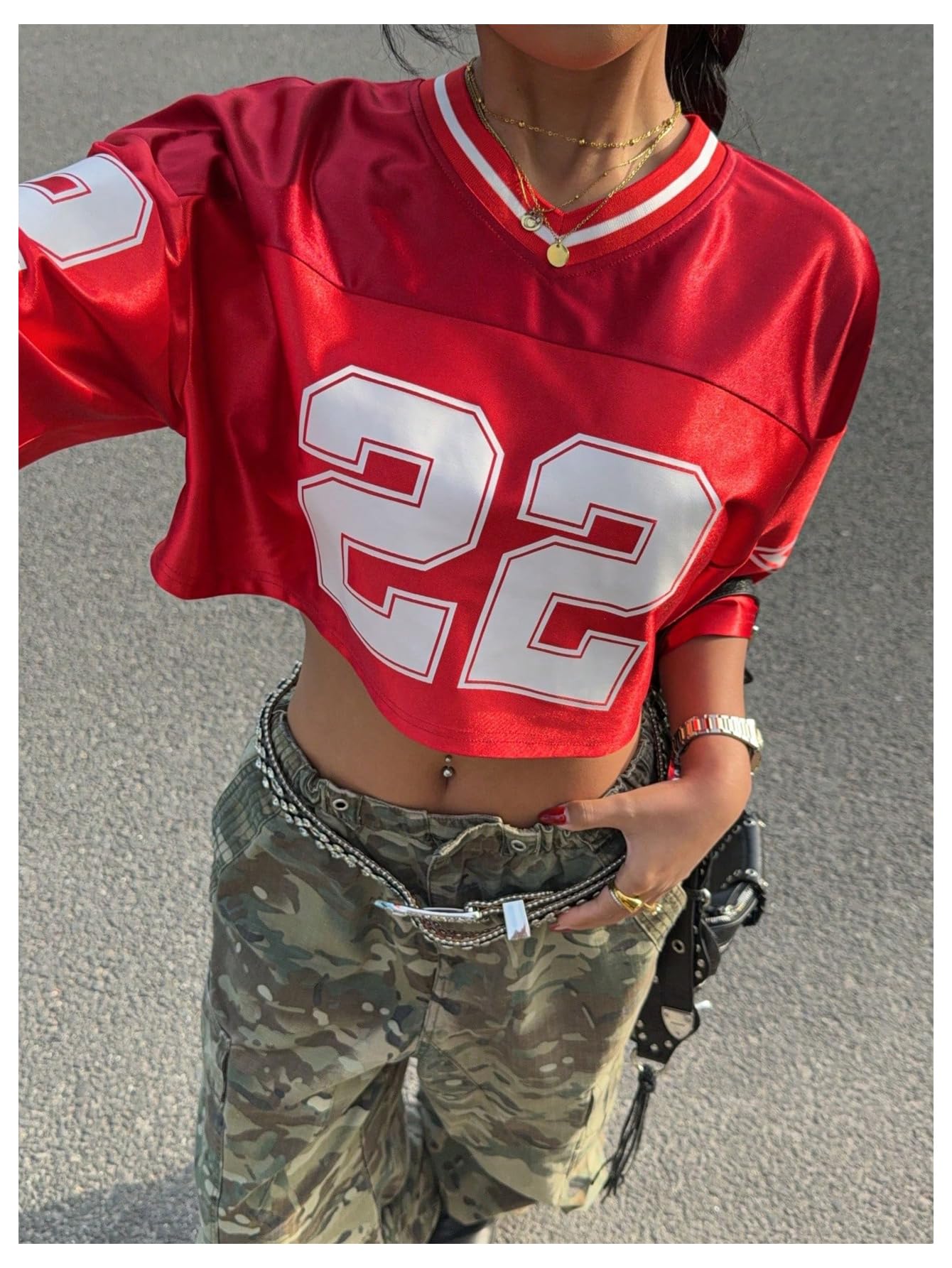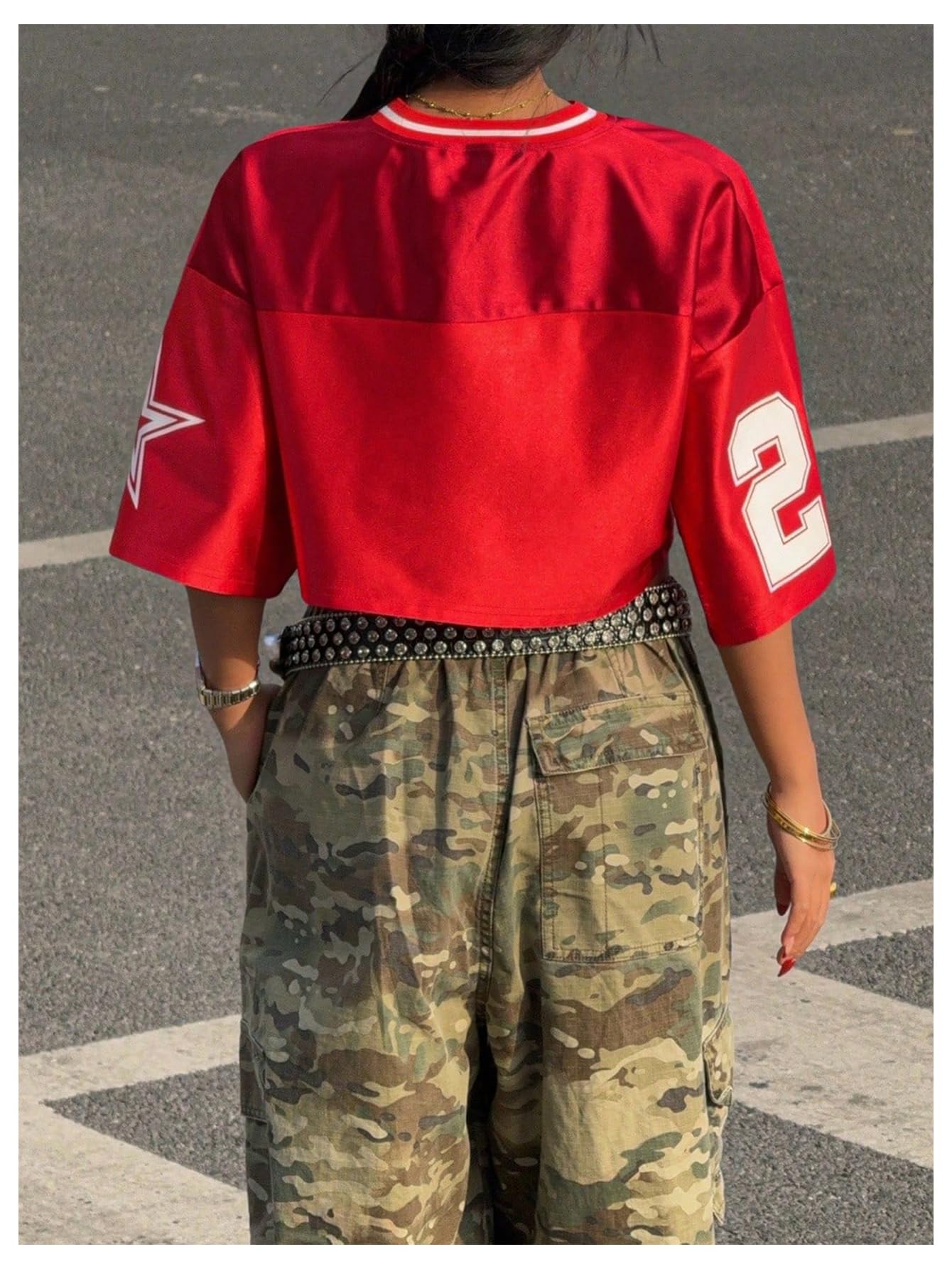 Number graphic t shirts, casual summer tops, contrast binding, y2k style, womens t shirts