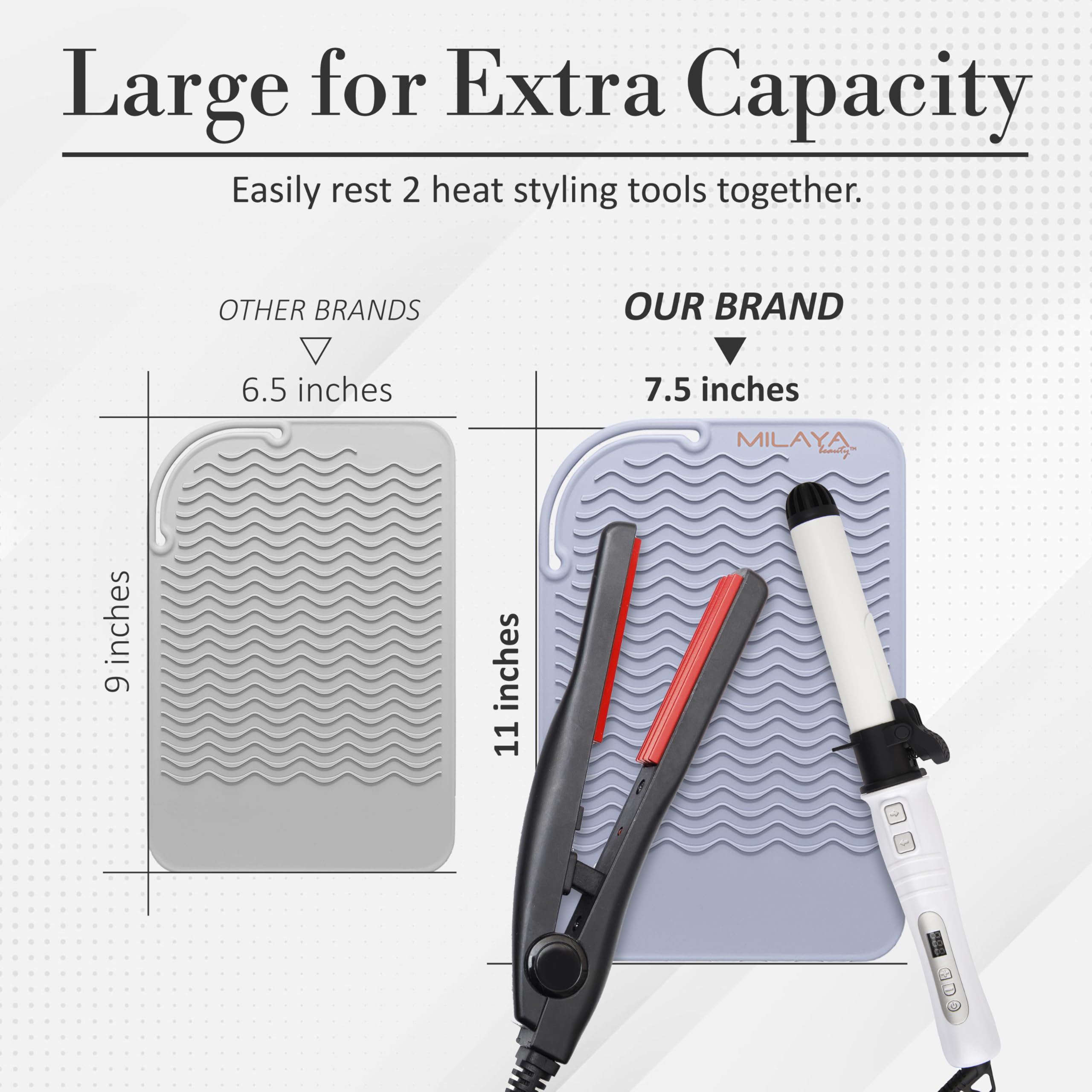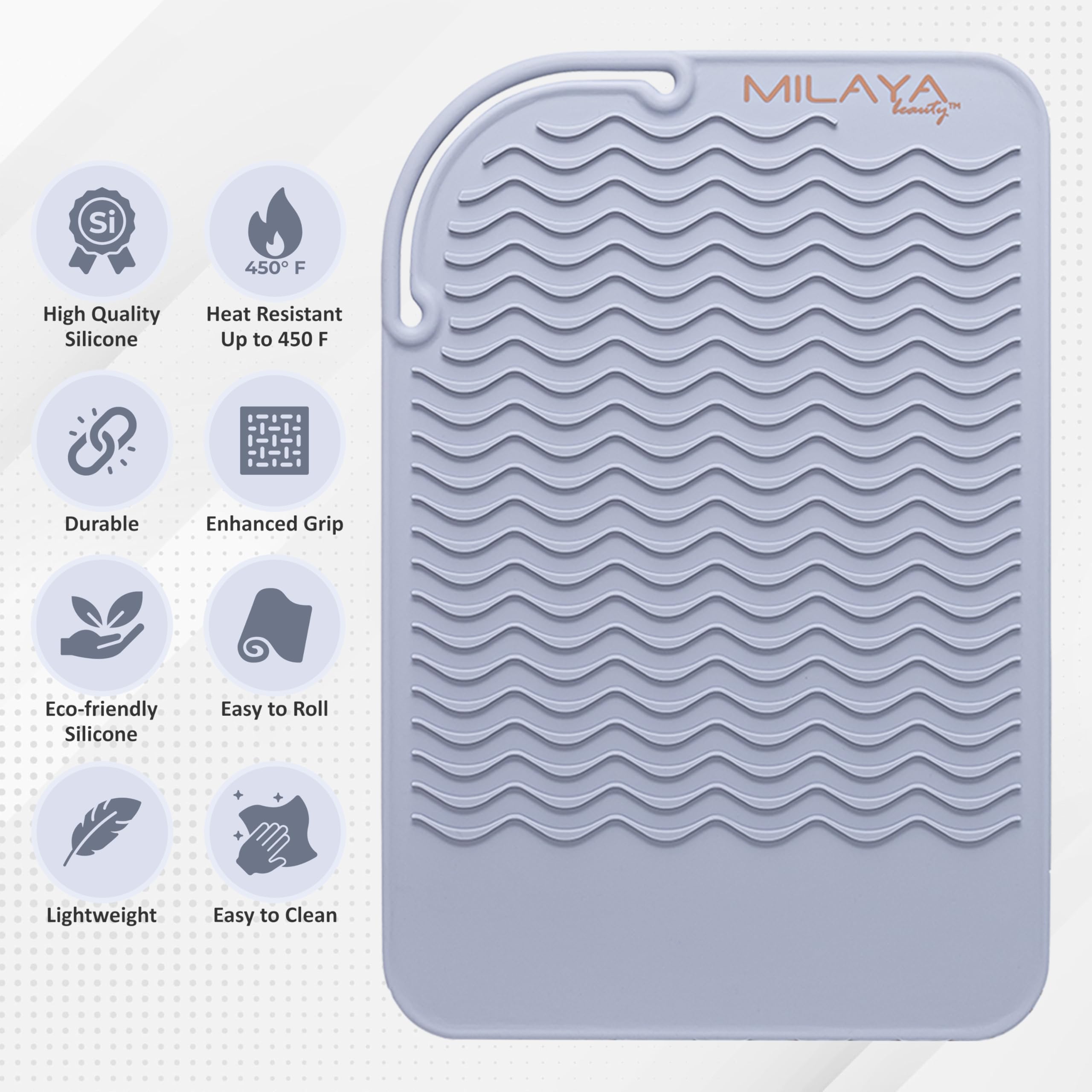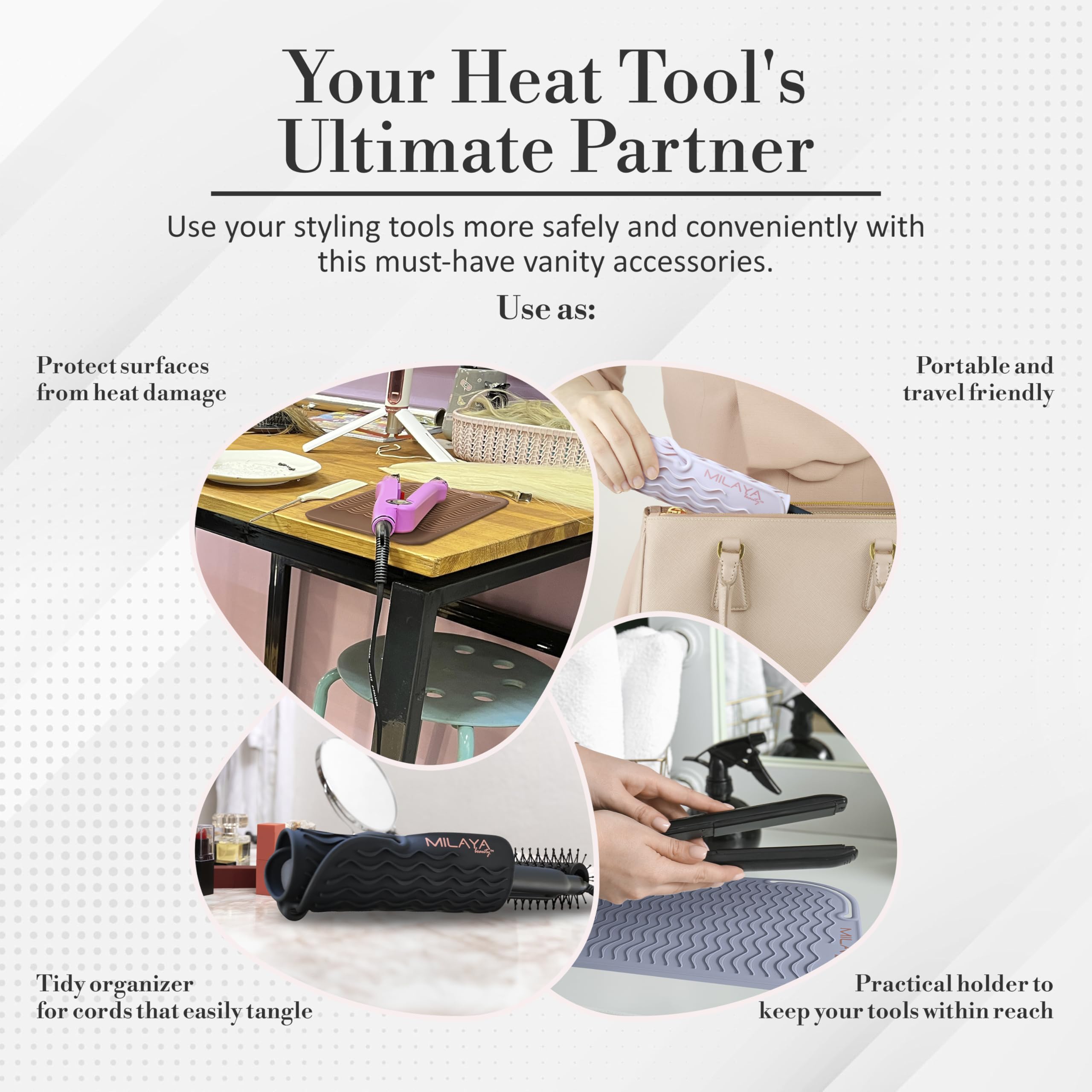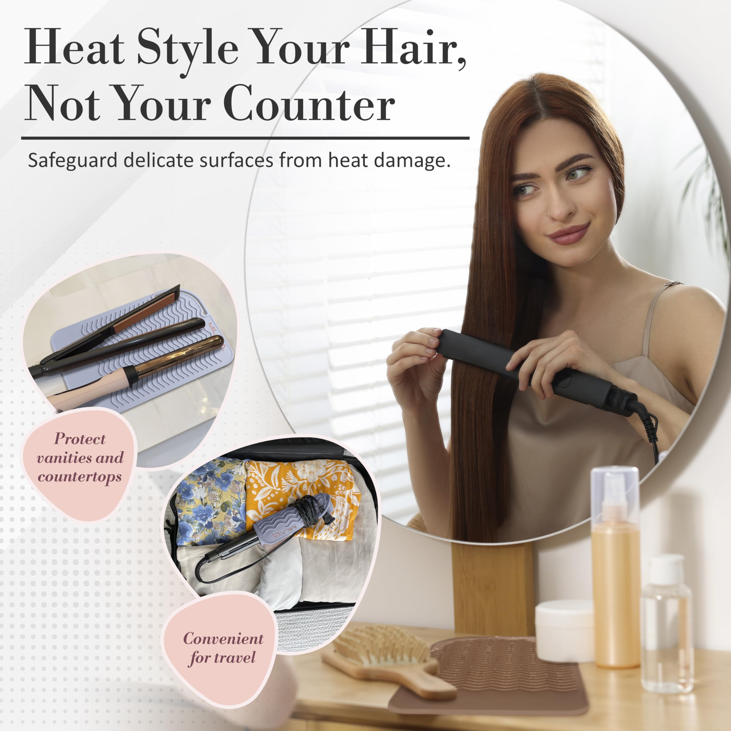 Crafted from thicker, high-quality silicone, our heat resistant mat for hair tools shields countertops and vanities from heat damage. The non-slip, anti-scald design prevents burns—perfect for home, salon, or vanity décor setups.