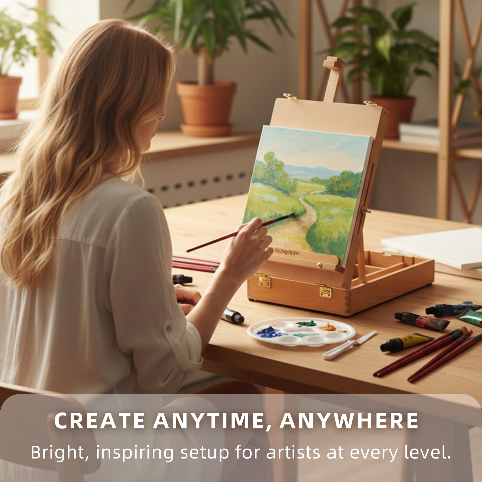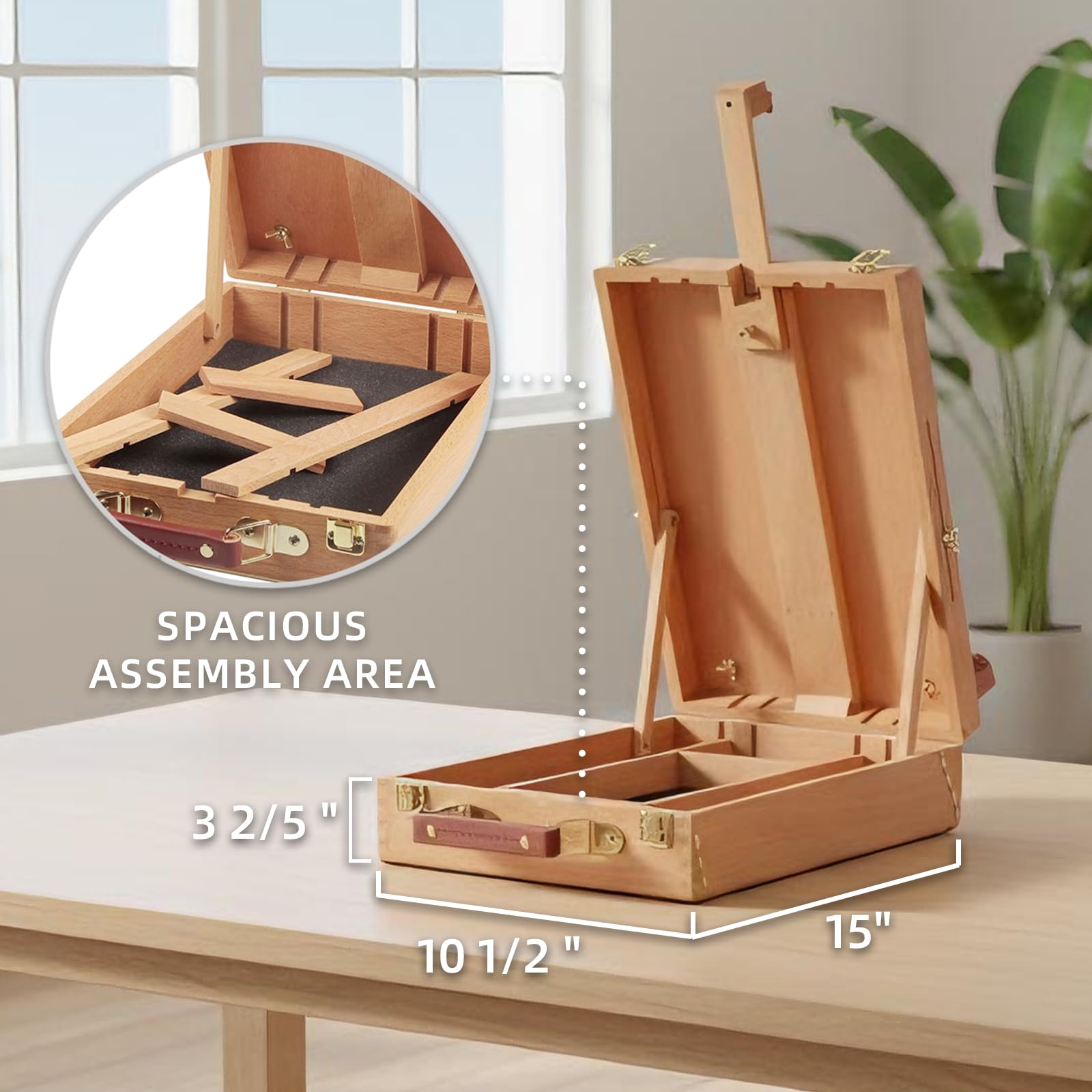 Beechwood Easel Box: Falling in Art table easel box features a smooth surface and fine workmanship. Adjustable settings allow you to find the right angle for creation, protecting the neck and back from fatigue. Internal storage compartments are convenient for storing drawing tools.