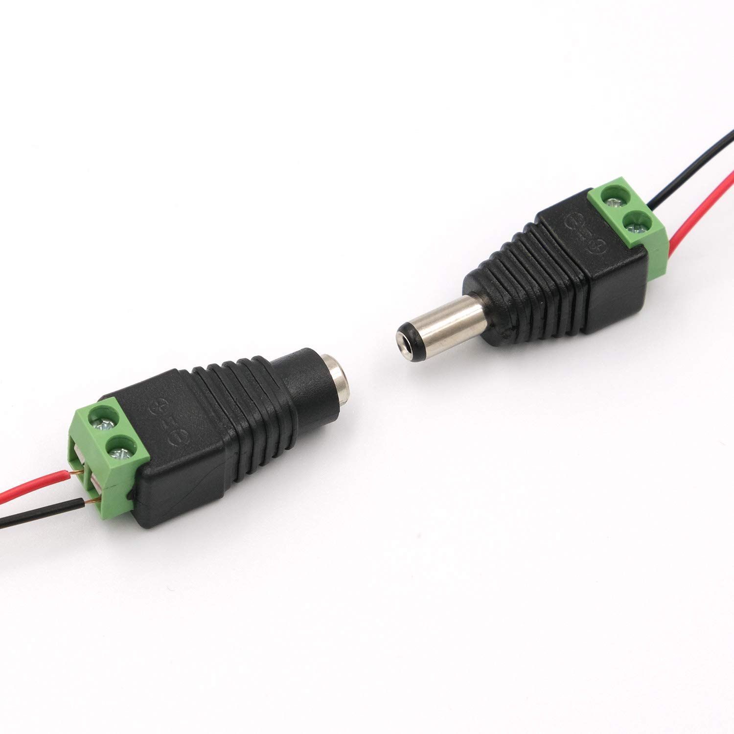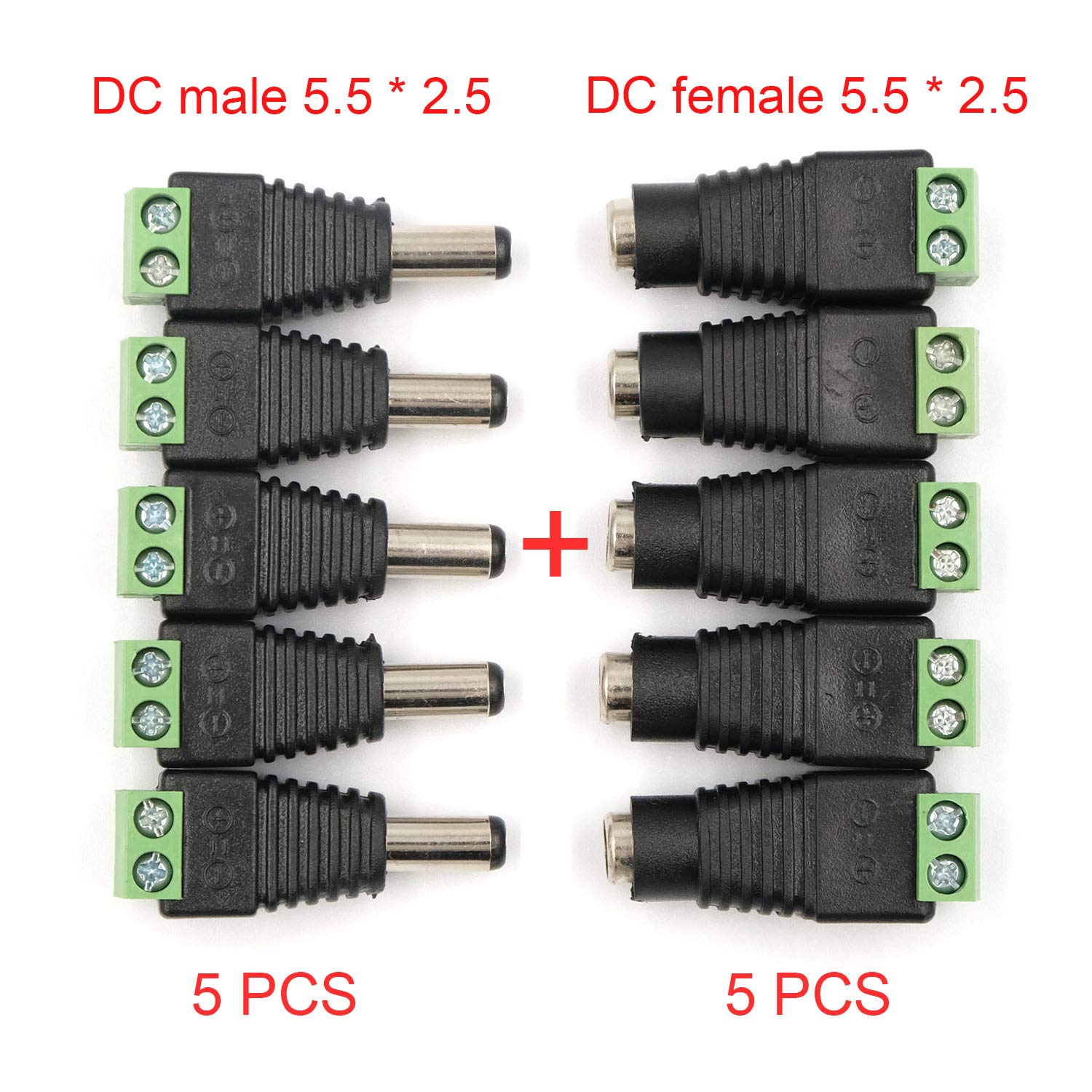 GOSONO 10Pcs/lot Male DC Power Plug Connector 2.5mm x 5.5mm (Screw Fastening Type) Needn't Welding DC Plug Adapter Use for: Led Driver/ Strip connector/ CCTV Camera DC 5.5*2.1mm Length: 27.5cm Conductor:AWG 22 (0.3mm) The Maximum load of current:12V 3A Transmission voltage: 1V~38V Material: Copper Wire Description: Pre-tinned copper clad, Easy to weld and install, secure connection and rapid transmission Provides a simple and secure DIY solution for DC power connectivity, work with a power adapter or a power supply box Compatible with all CCTV security surveillance camera systems and other 2.1*5.5mm DC power devices like part lighting or led strips Package According to your options