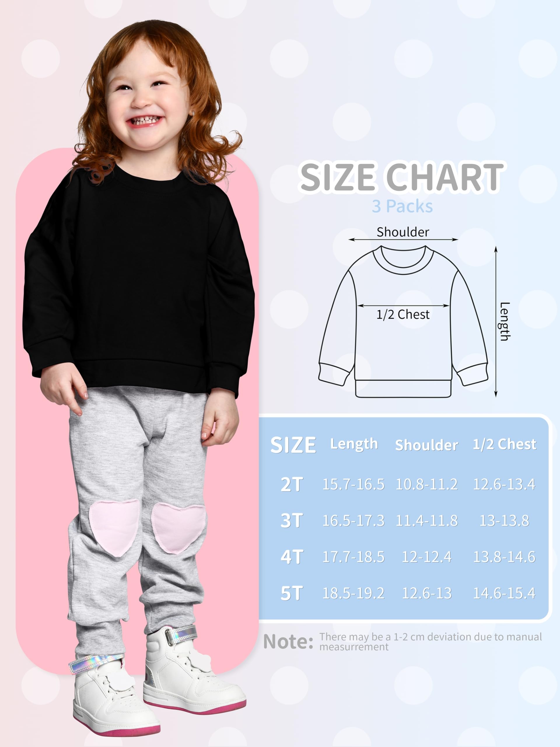 3 Pack Toddler Girl Sweatshirts : Toddler long-sleeve shirts come in adorable colors, sizes fit for 2T, 3T, 4T, and 5T toddler baby girls kids to match for skinny pants, flared trousers, sweatpants, leggings, jeans