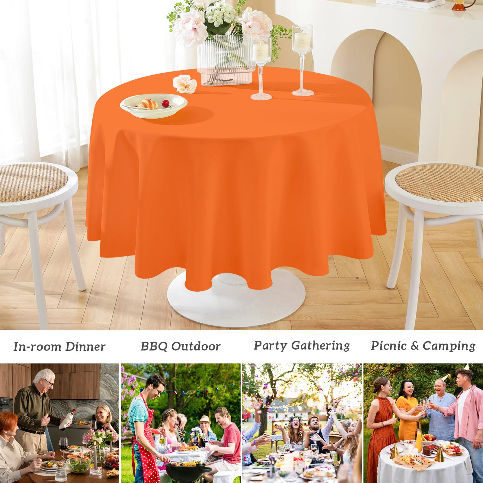 Excellent Quality: Orange round tablecloth for parties are made of premium durable PE material. Perfect for indoor-outdoor to provide a relaxed and minimalist space for dining and enjoying your party time